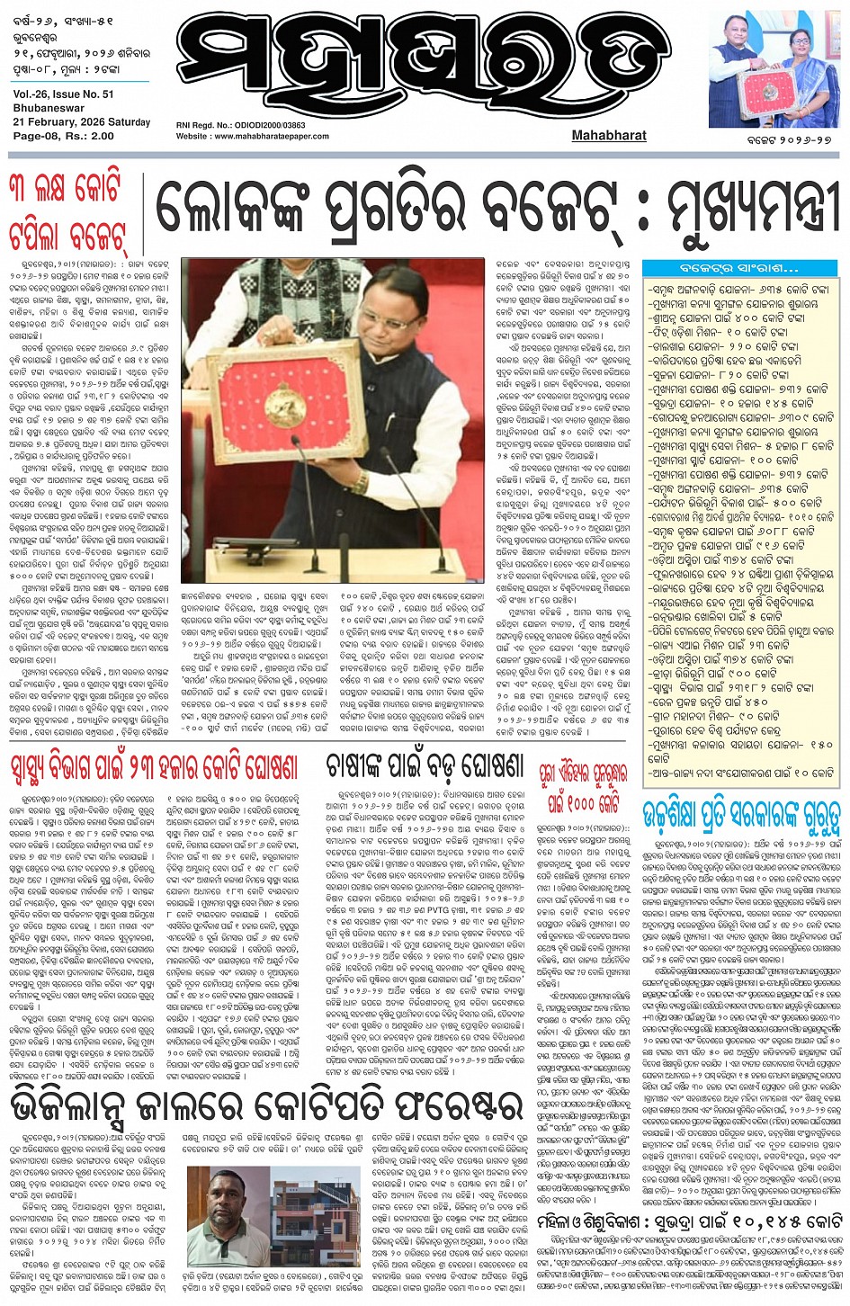The Mahabharat Odia Daily Newspaper February 21, 2026 The Mahabharat Odia Daily Newspaper << First << 1 2 3 4 >> Last >> Page 1Page 2Page 3Page 4Page 5Page 6Page 7Page 8 × The Mahabharat Odia Daily Newspaper Page-1Page-2Page-3Page-4Page-5Page-6Page-7Page-8 Full PDF << First << 1 2 3 4 >> Last >> Page-1Page-2Page-3Page-4Page-5Page-6Page-7Page-8 Page-1