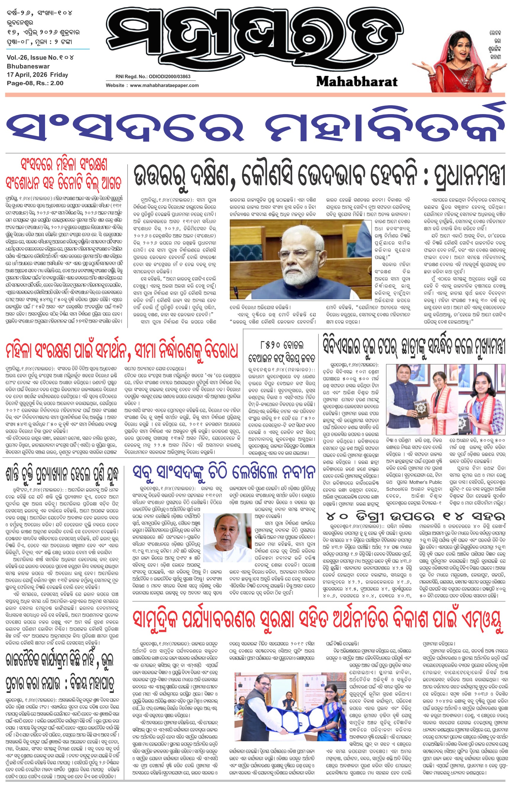 The Mahabharat Odia Daily Newspaper April 16, 2026 The Mahabharat Odia Daily Newspaper << First << 1 2 3 4 >> Last >> Page 1Page 2Page 3Page 4Page 5Page 6Page 7Page 8 × The Mahabharat Odia Daily Newspaper Page-1Page-2Page-3Page-4Page-5Page-6Page-7Page-8 Full PDF << First << 1 2 3 4 >> Last >> Page-1Page-2Page-3Page-4Page-5Page-6Page-7Page-8 Page-1