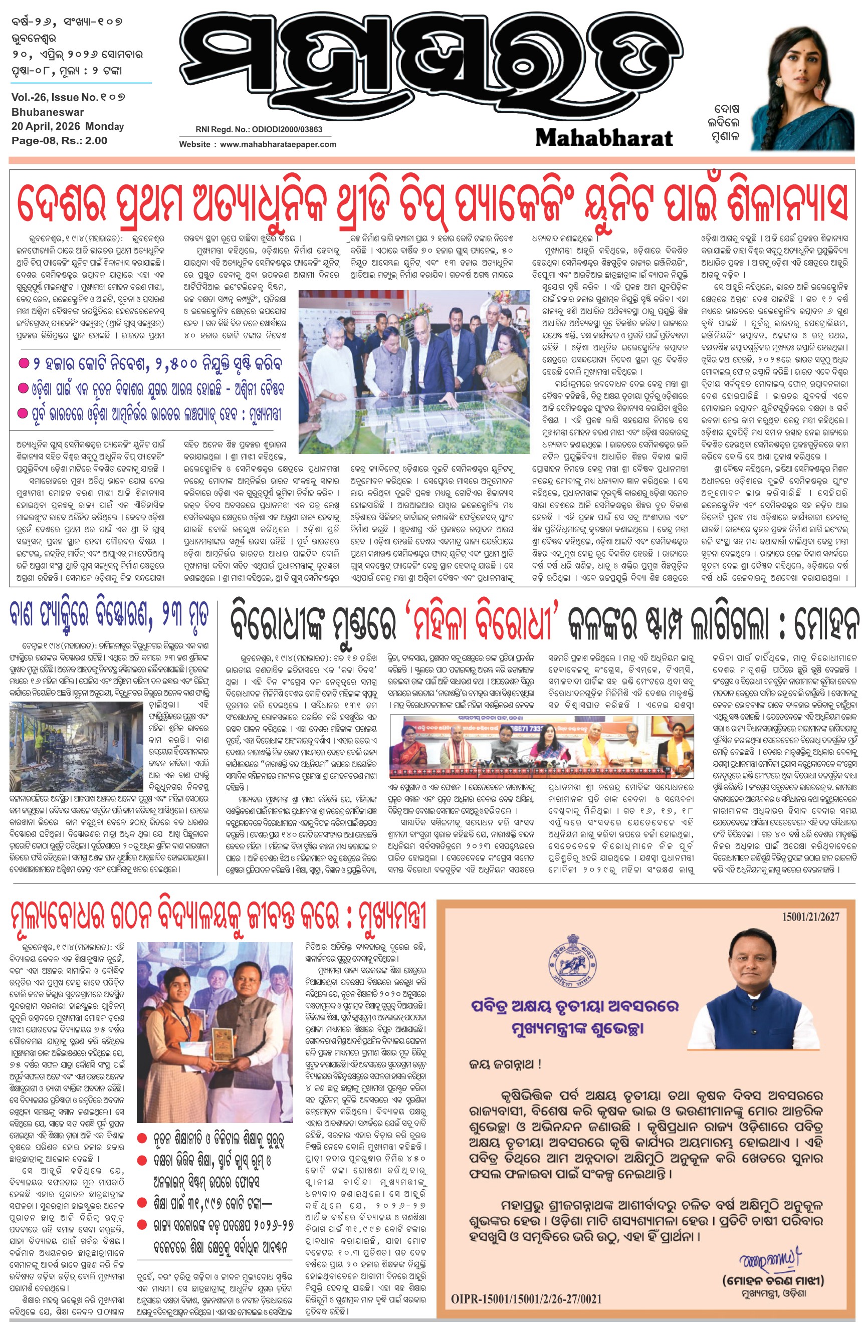 The Mahabharat Odia Daily Newspaper April 19, 2026 The Mahabharat Odia Daily Newspaper << First << 1 2 3 4 >> Last >> Page 1Page 2Page 3Page 4Page 5Page 6Page 7Page 8 × The Mahabharat Odia Daily Newspaper Page-1Page-2Page-3Page-4Page-5Page-6Page-7Page-8 Full PDF << First << 1 2 3 4 >> Last >> Page-1Page-2Page-3Page-4Page-5Page-6Page-7Page-8 Page-1