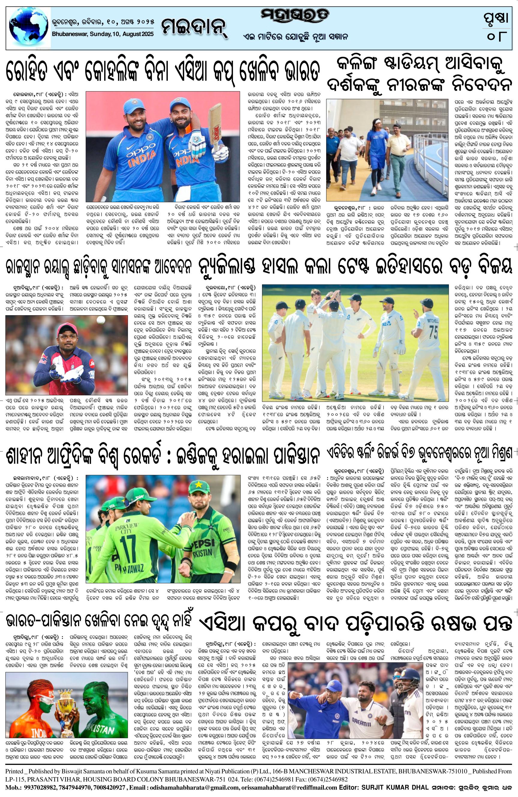 The Mahabharat Odia Daily Newspaper Page: 8 August 10, 2025 The Mahabharat Odia Daily Newspaper << First << 5 6 7 8 >> Last >> Page 1Page 2Page 3Page 4Page 5Page 6Page 7Page 8 × The Mahabharat Odia Daily Newspaper Page-1Page-2Page-3Page-4Page-5Page-6Page-7Page-8 << First << 5 6 7 8 >> Last >> Page-1Page-2Page-3Page-4Page-5Page-6Page-7Page-8 Page-8