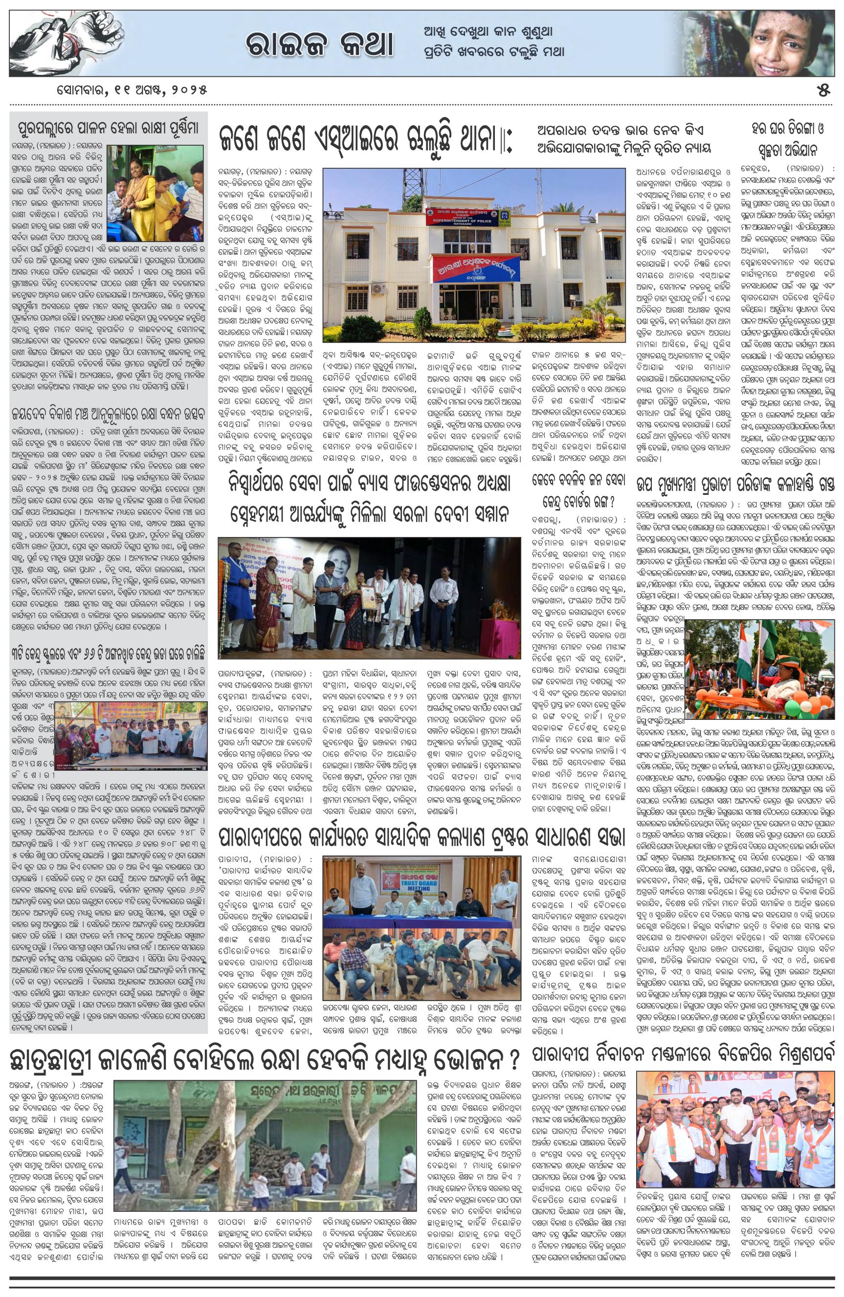 The Mahabharat Odia Daily Newspaper Page: 5 August 11, 2025 The Mahabharat Odia Daily Newspaper << First << 3 4 5 6 >> Last >> Page 1Page 2Page 3Page 4Page 5Page 6Page 7Page 8 × The Mahabharat Odia Daily Newspaper Page-1Page-2Page-3Page-4Page-5Page-6Page-7Page-8 Full PDF << First << 3 4 5 6 >> Last >> Page-1Page-2Page-3Page-4Page-5Page-6Page-7Page-8 Page-5