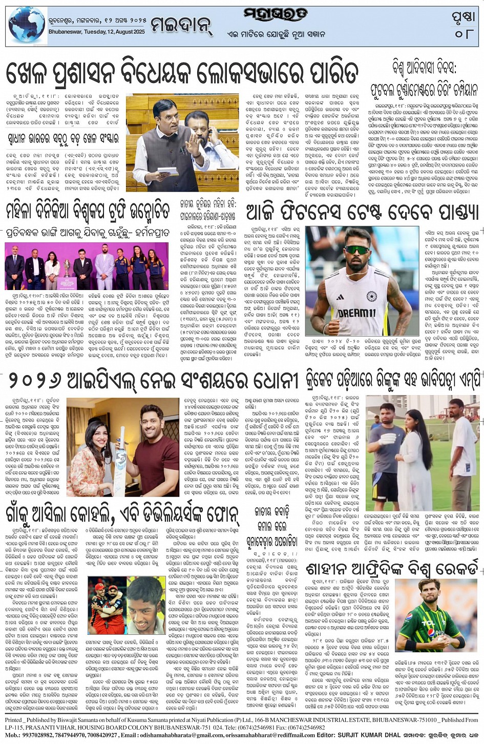 The Mahabharat Odia Daily Newspaper Page: 8 August 12, 2025 The Mahabharat Odia Daily Newspaper << First << 5 6 7 8 >> Last >> Page 1Page 2Page 3Page 4Page 5Page 6Page 7Page 8 × The Mahabharat Odia Daily Newspaper Page-1Page-2Page-3Page-4Page-5Page-6Page-7Page-8 Full PDF << First << 5 6 7 8 >> Last >> Page-1Page-2Page-3Page-4Page-5Page-6Page-7Page-8 Page-8