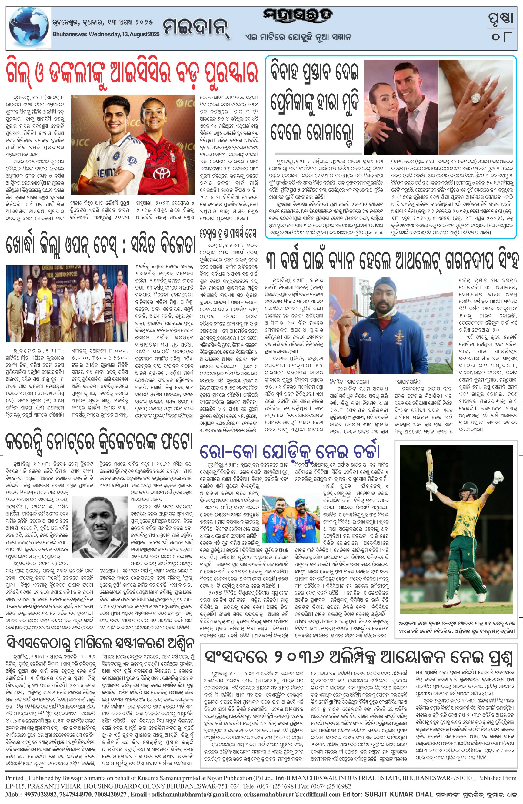 The Mahabharat Odia Daily Newspaper Page: 8 August 13, 2025 The Mahabharat Odia Daily Newspaper << First << 5 6 7 8 >> Last >> Page 1Page 2Page 3Page 4Page 5Page 6Page 7Page 8 × The Mahabharat Odia Daily Newspaper Page-1Page-2Page-3Page-4Page-5Page-6Page-7Page-8 Full PDF << First << 5 6 7 8 >> Last >> Page-1Page-2Page-3Page-4Page-5Page-6Page-7Page-8 Page-8