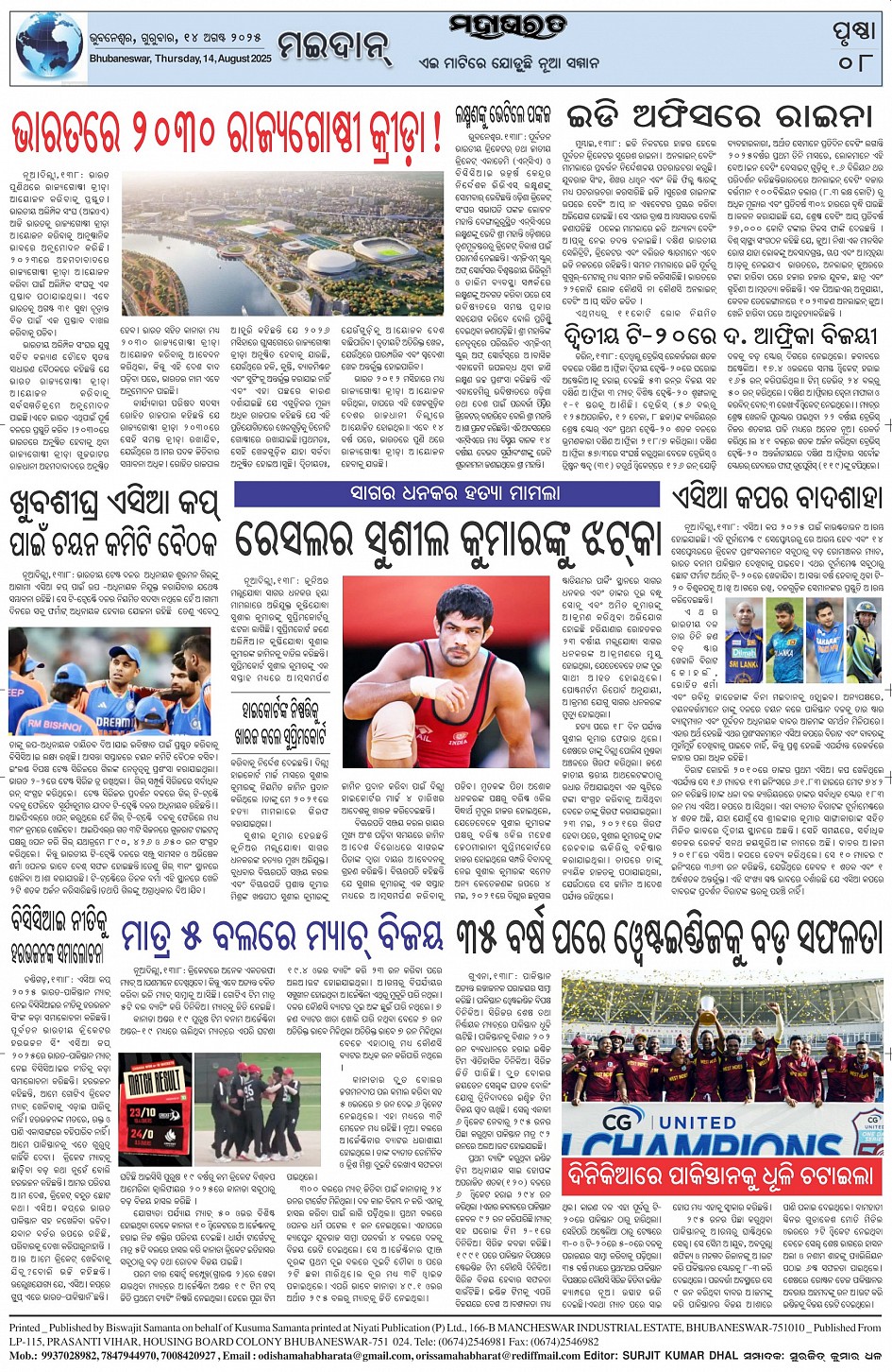 The Mahabharat Odia Daily Newspaper Page: 8 August 14, 2025 The Mahabharat Odia Daily Newspaper << First << 5 6 7 8 >> Last >> Page 1Page 2Page 3Page 4Page 5Page 6Page 7Page 8 × The Mahabharat Odia Daily Newspaper Page-1Page-2Page-3Page-4Page-5Page-6Page-7Page-8 Full PDF << First << 5 6 7 8 >> Last >> Page-1Page-2Page-3Page-4Page-5Page-6Page-7Page-8 Page-8