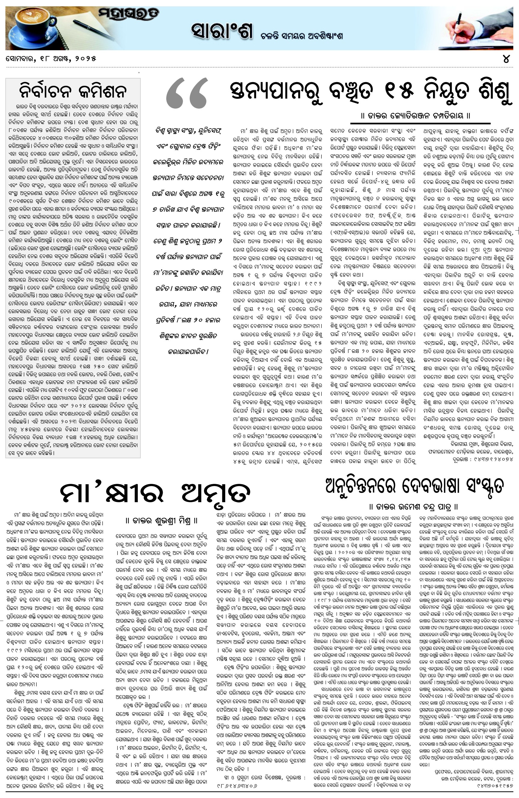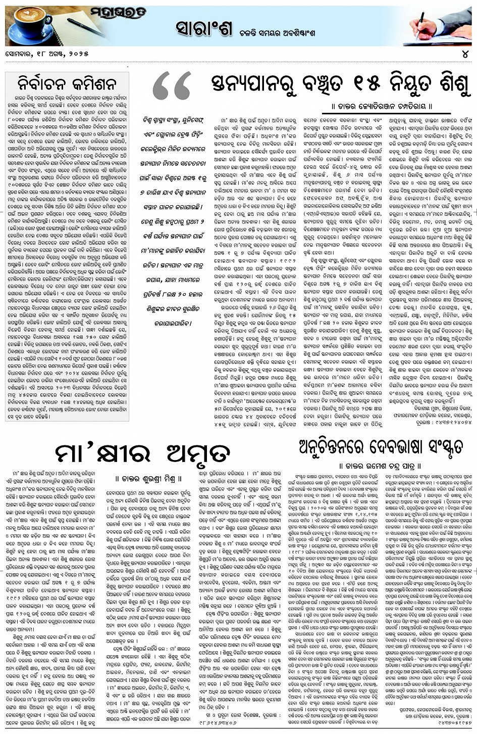 The Mahabharat Odia Daily Newspaper Page: 4 August 18, 2025 The Mahabharat Odia Daily Newspaper << First << 2 3 4 5 >> Last >> Page 1Page 2Page 3Page 4Page 5Page 6Page 7Page 8 × The Mahabharat Odia Daily Newspaper Page-1Page-2Page-3Page-4Page-5Page-6Page-7Page-8 Full PDF << First << 2 3 4 5 >> Last >> Page-1Page-2Page-3Page-4Page-5Page-6Page-7Page-8 Page-4