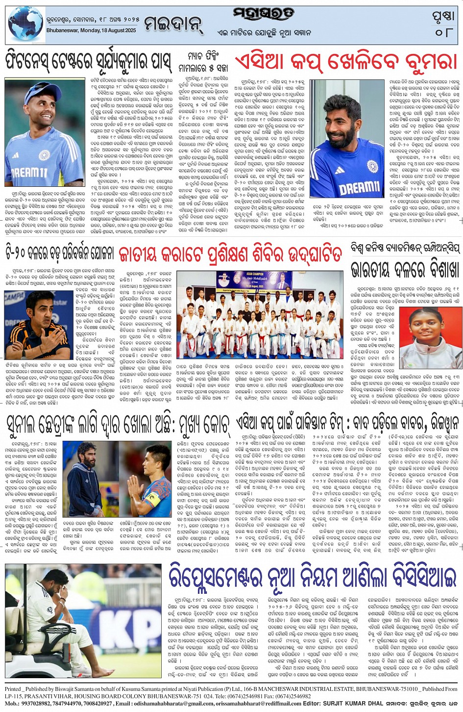 The Mahabharat Odia Daily Newspaper Page: 8 August 18, 2025 The Mahabharat Odia Daily Newspaper << First << 5 6 7 8 >> Last >> Page 1Page 2Page 3Page 4Page 5Page 6Page 7Page 8 × The Mahabharat Odia Daily Newspaper Page-1Page-2Page-3Page-4Page-5Page-6Page-7Page-8 Full PDF << First << 5 6 7 8 >> Last >> Page-1Page-2Page-3Page-4Page-5Page-6Page-7Page-8 Page-8