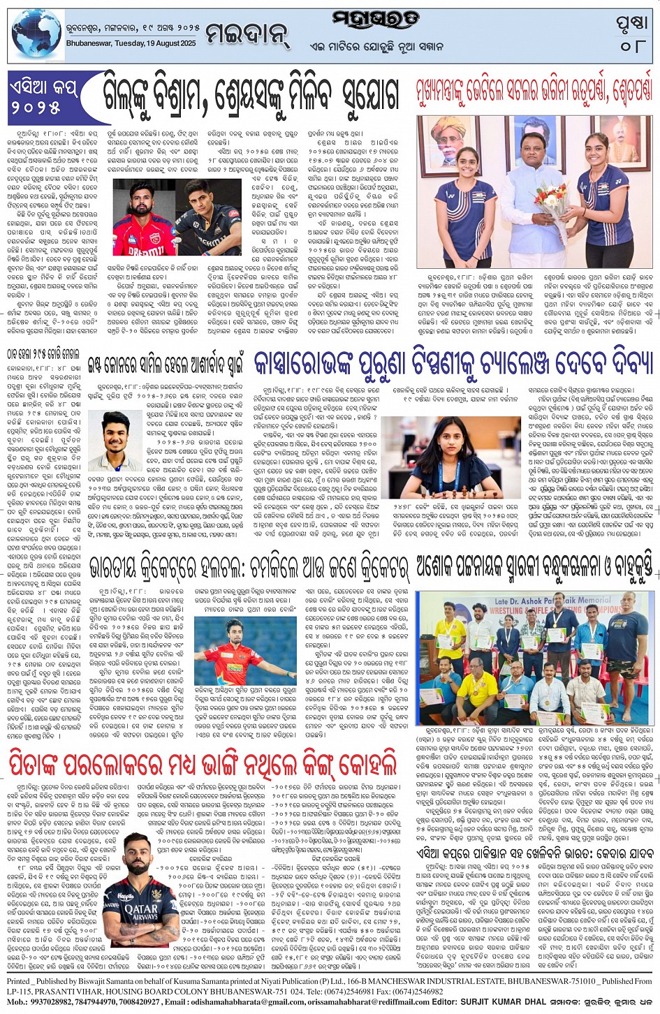 The Mahabharat Odia Daily Newspaper Page: 8 August 19, 2025 The Mahabharat Odia Daily Newspaper << First << 5 6 7 8 >> Last >> Page 1Page 2Page 3Page 4Page 5Page 6Page 7Page 8 × The Mahabharat Odia Daily Newspaper Page-1Page-2Page-3Page-4Page-5Page-6Page-7Page-8 Full PDF << First << 5 6 7 8 >> Last >> Page-1Page-2Page-3Page-4Page-5Page-6Page-7Page-8 Page-8