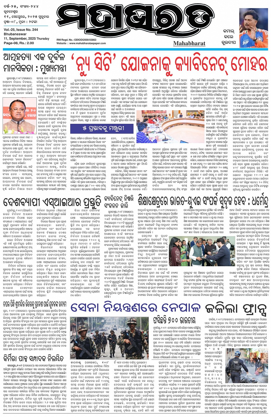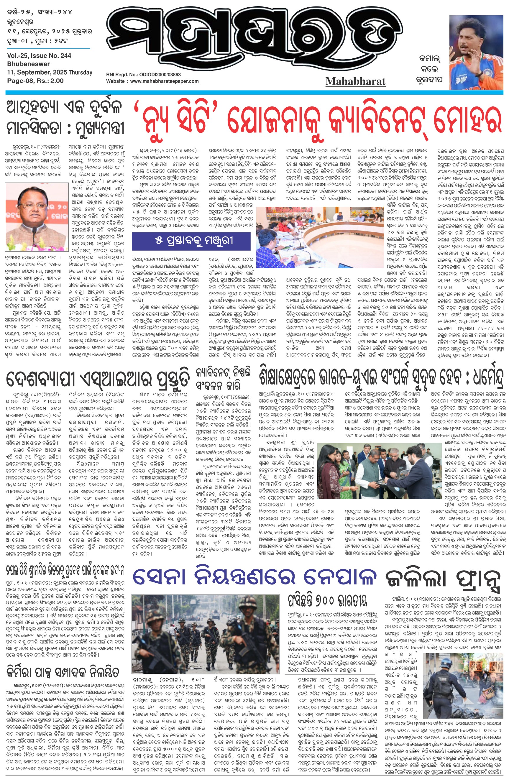 The Mahabharat Odia Daily Newspaper September 11, 2025 The Mahabharat Odia Daily Newspaper << First << 1 2 3 4 >> Last >> Page 1Page 2Page 3Page 4Page 5Page 6Page 7Page 8 × The Mahabharat Odia Daily Newspaper Page-1Page-2Page-3Page-4Page-5Page-6Page-7Page-8 Full PDF << First << 1 2 3 4 >> Last >> Page-1Page-2Page-3Page-4Page-5Page-6Page-7Page-8 Page-1