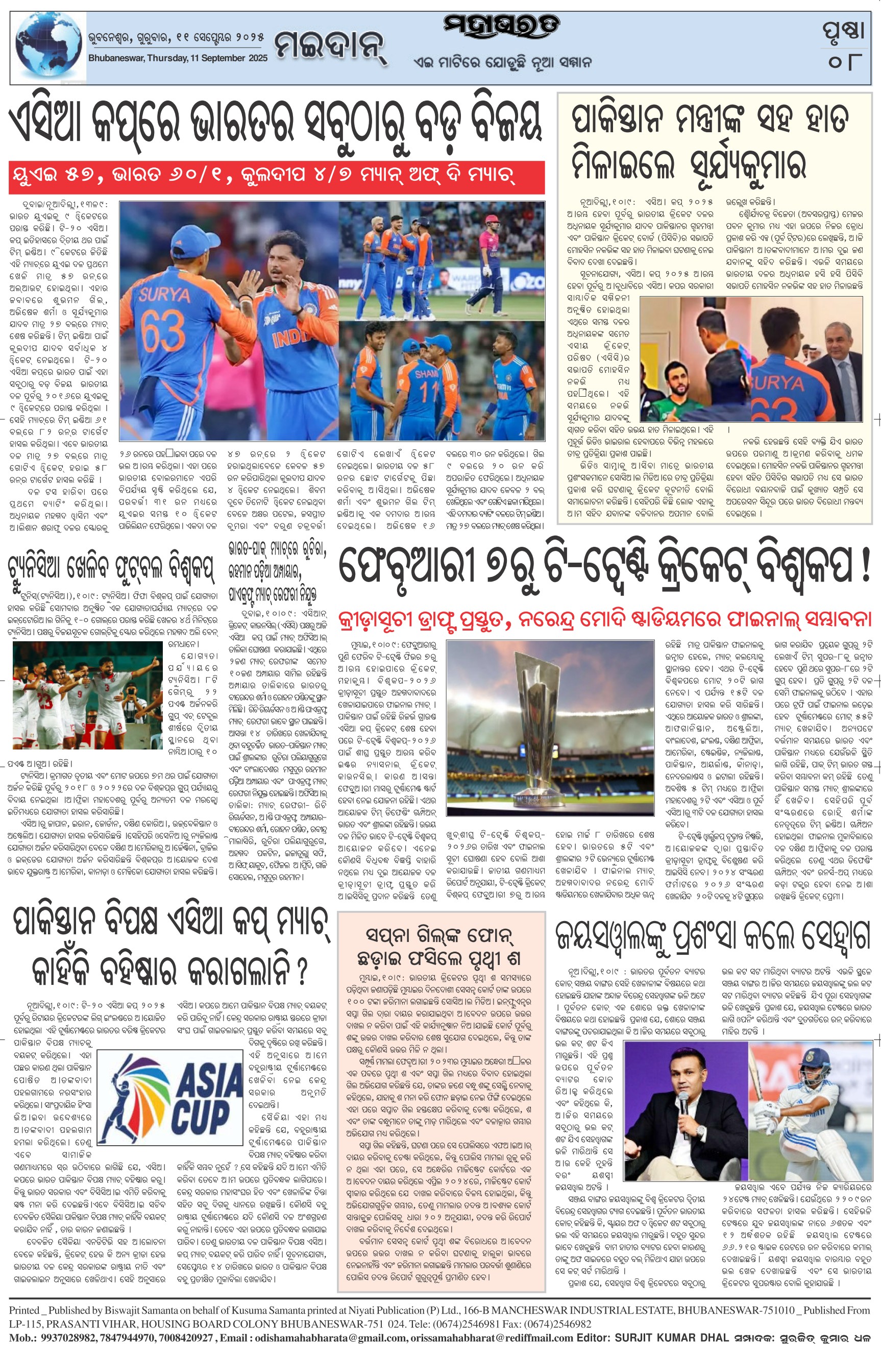 The Mahabharat Odia Daily Newspaper Page: 8 September 11, 2025 The Mahabharat Odia Daily Newspaper << First << 5 6 7 8 >> Last >> Page 1Page 2Page 3Page 4Page 5Page 6Page 7Page 8 × The Mahabharat Odia Daily Newspaper Page-1Page-2Page-3Page-4Page-5Page-6Page-7Page-8 Full PDF << First << 5 6 7 8 >> Last >> Page-1Page-2Page-3Page-4Page-5Page-6Page-7Page-8 Page-8