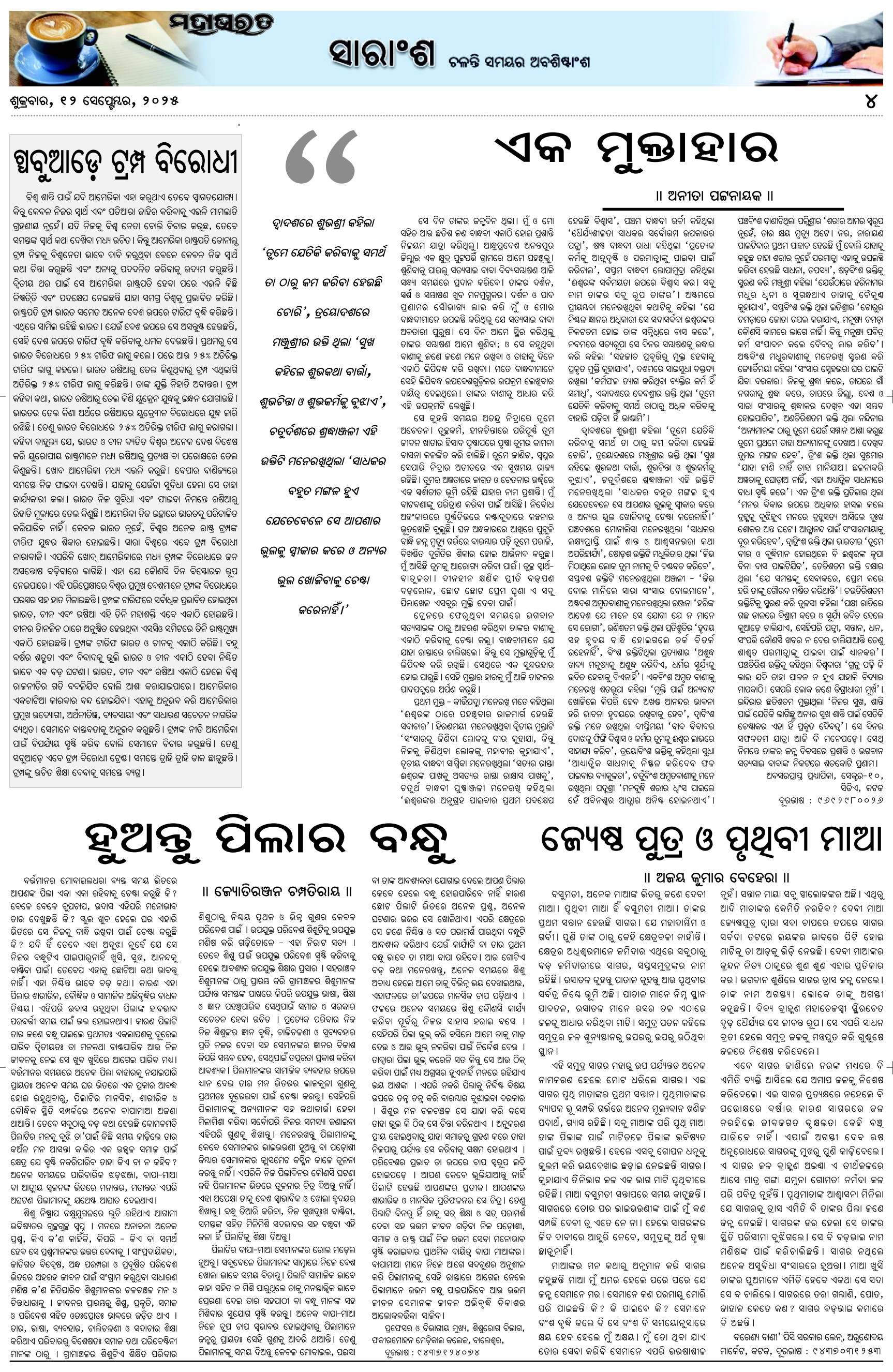 The Mahabharat Odia Daily Newspaper Page: 4 September 12, 2025 The Mahabharat Odia Daily Newspaper << First << 2 3 4 5 >> Last >> Page 1Page 2Page 3Page 4Page 5Page 6Page 7Page 8 × The Mahabharat Odia Daily Newspaper Page-1Page-2Page-3Page-4Page-5Page-6Page-7Page-8 Full PDF << First << 2 3 4 5 >> Last >> Page-1Page-2Page-3Page-4Page-5Page-6Page-7Page-8 Page-4