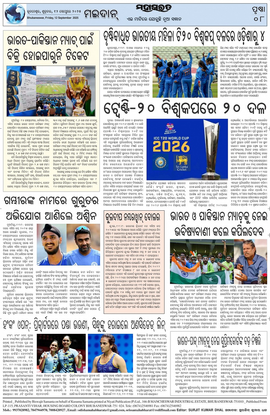 The Mahabharat Odia Daily Newspaper Page: 8 September 12, 2025 The Mahabharat Odia Daily Newspaper << First << 5 6 7 8 >> Last >> Page 1Page 2Page 3Page 4Page 5Page 6Page 7Page 8 × The Mahabharat Odia Daily Newspaper Page-1Page-2Page-3Page-4Page-5Page-6Page-7Page-8 Full PDF << First << 5 6 7 8 >> Last >> Page-1Page-2Page-3Page-4Page-5Page-6Page-7Page-8 Page-8