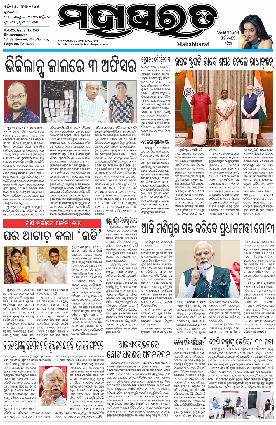 The Mahabharat Odia Daily Newspaper September 13, 2025 The Mahabharat Odia Daily Newspaper << First << 1 2 3 4 >> Last >> Page 1Page 2Page 3Page 4Page 5Page 6Page 7Page 8 × The Mahabharat Odia Daily Newspaper Page-1Page-2Page-3Page-4Page-5Page-6Page-7Page-8 Full PDF << First << 1 2 3 4 >> Last >> Page-1Page-2Page-3Page-4Page-5Page-6Page-7Page-8 Page-1