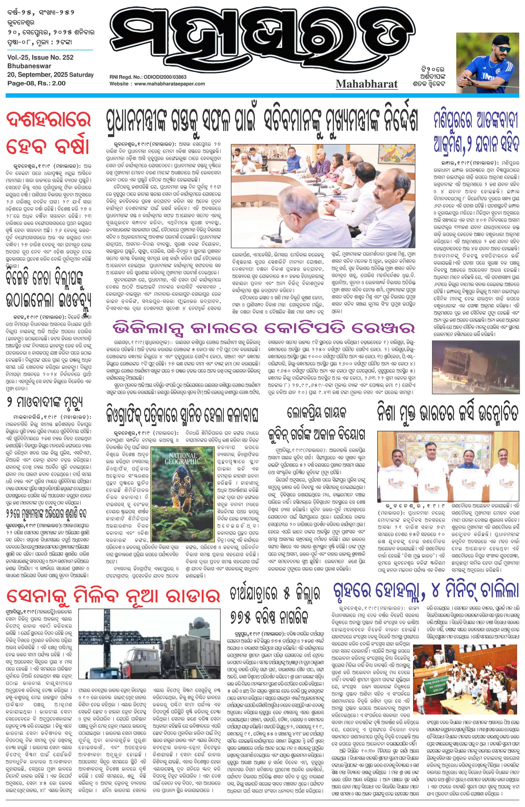 The Mahabharat Odia Daily Newspaper September 20, 2025 The Mahabharat Odia Daily Newspaper << First << 1 2 3 4 >> Last >> Page 1Page 2Page 3Page 4Page 5Page 6Page 7Page 8 × The Mahabharat Odia Daily Newspaper Page-1Page-2Page-3Page-4Page-5Page-6Page-7Page-8 Full PDF << First << 1 2 3 4 >> Last >> Page-1Page-2Page-3Page-4Page-5Page-6Page-7Page-8 Page-1