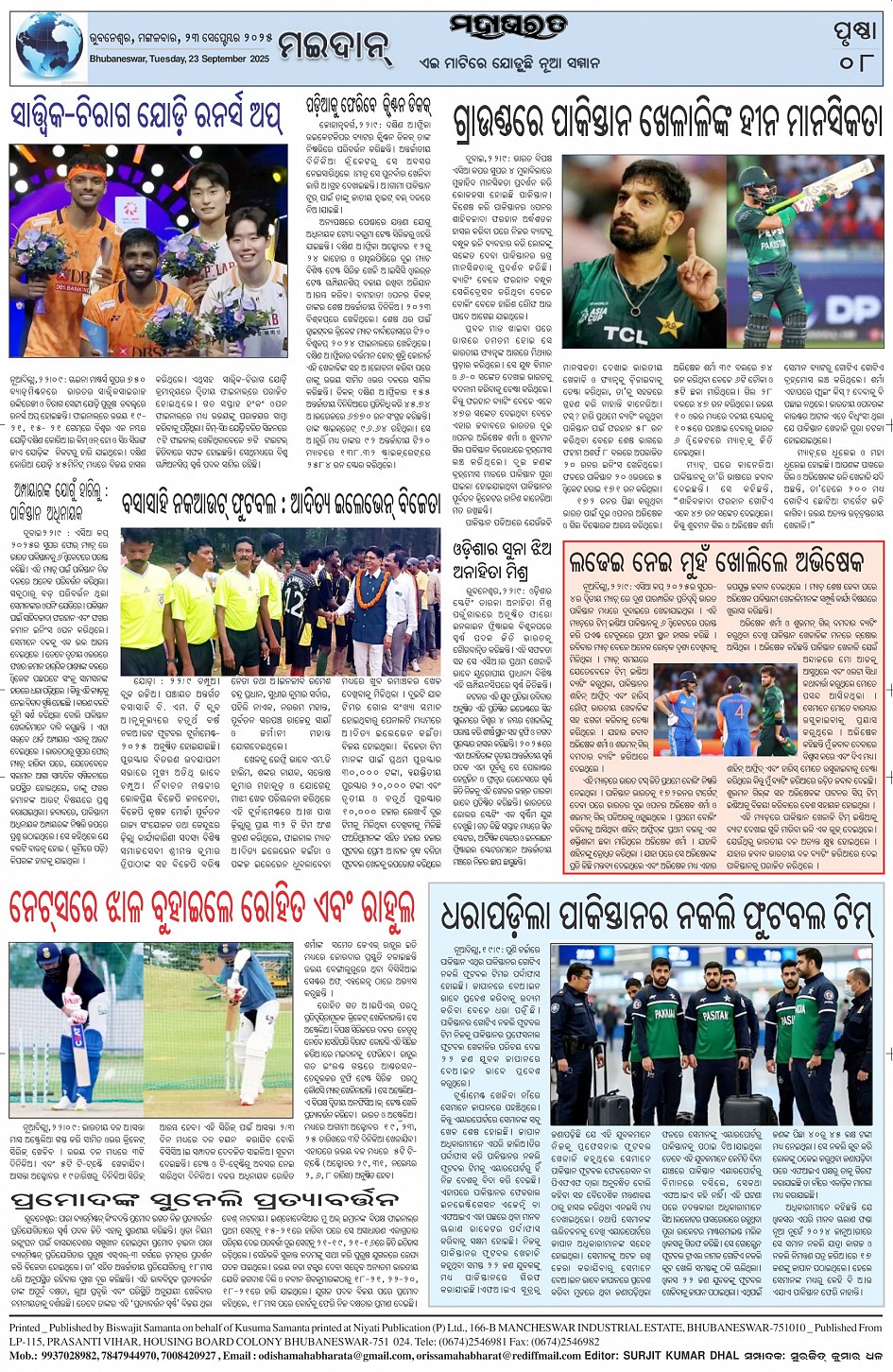 The Mahabharat Odia Daily Newspaper Page: 8 September 23, 2025 The Mahabharat Odia Daily Newspaper << First << 5 6 7 8 >> Last >> Page 1Page 2Page 3Page 4Page 5Page 6Page 7Page 8 × The Mahabharat Odia Daily Newspaper Page-1Page-2Page-3Page-4Page-5Page-6Page-7Page-8 Full PDF << First << 5 6 7 8 >> Last >> Page-1Page-2Page-3Page-4Page-5Page-6Page-7Page-8 Page-8