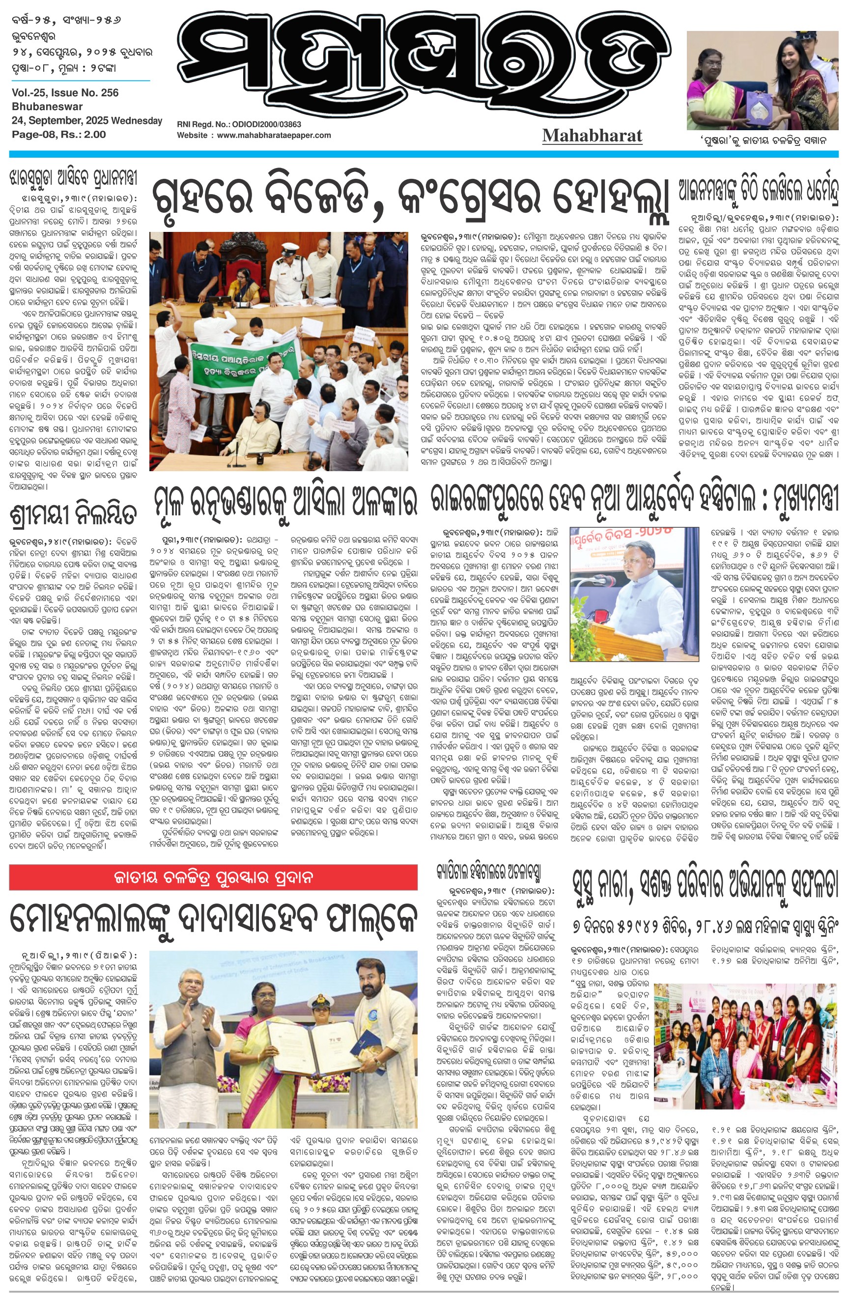 The Mahabharat Odia Daily Newspaper September 24, 2025 The Mahabharat Odia Daily Newspaper << First << 1 2 3 4 >> Last >> Page 1Page 2Page 3Page 4Page 5Page 6Page 7Page 8 × The Mahabharat Odia Daily Newspaper Page-1Page-2Page-3Page-4Page-5Page-6Page-7Page-8 Full PDF << First << 1 2 3 4 >> Last >> Page-1Page-2Page-3Page-4Page-5Page-6Page-7Page-8 Page-1