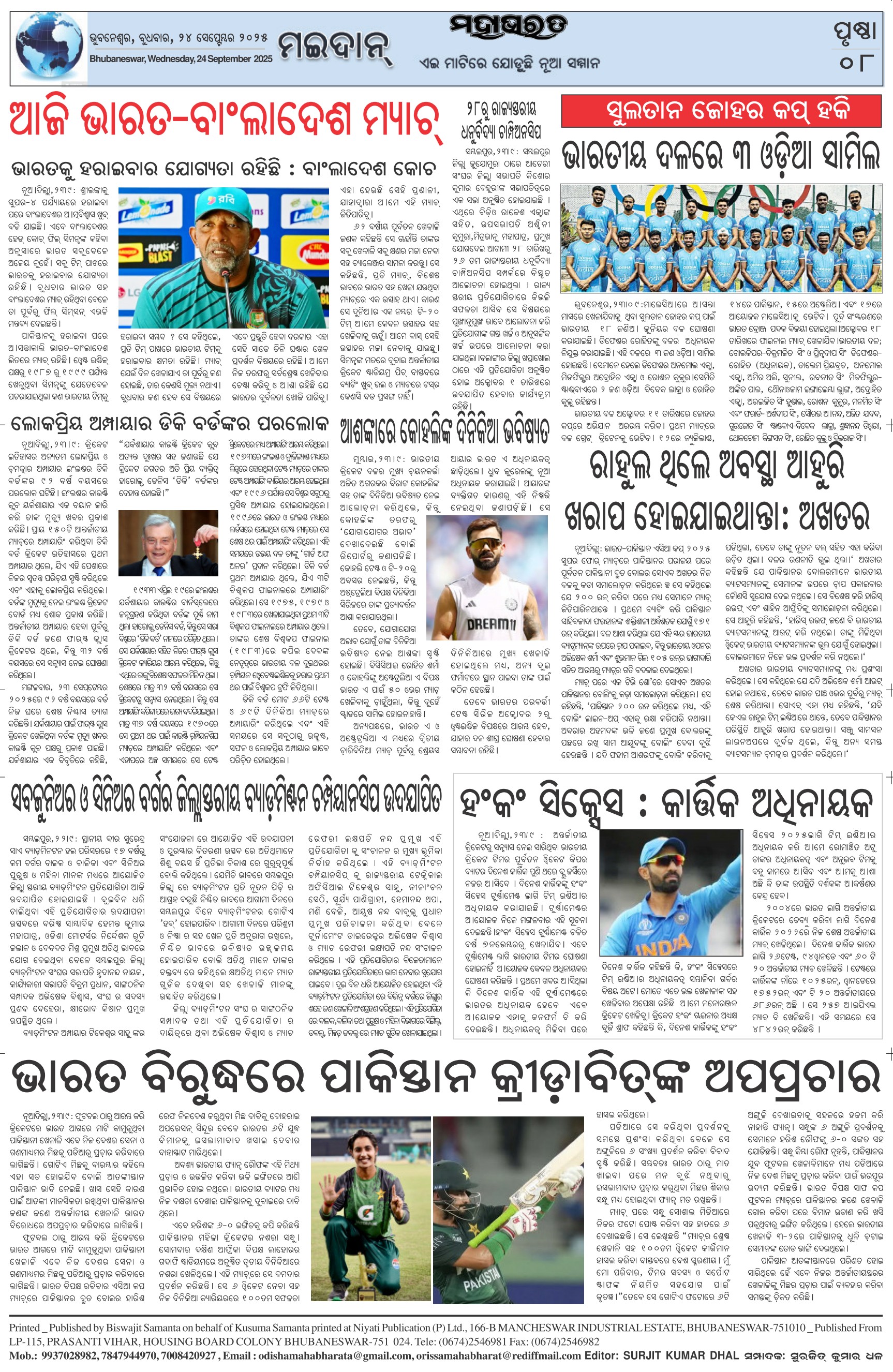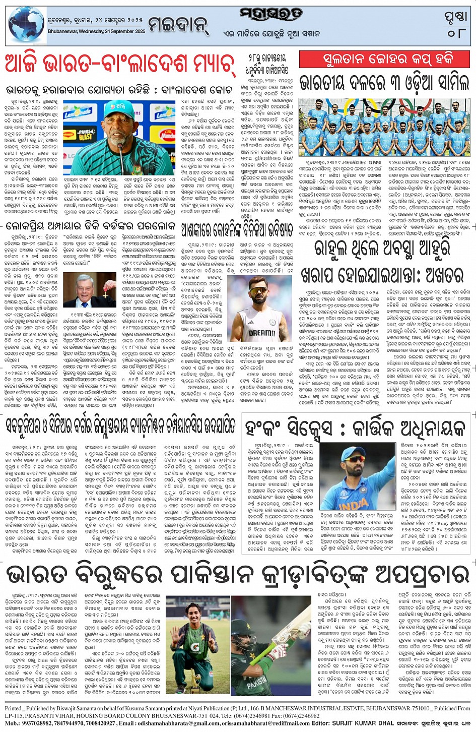 The Mahabharat Odia Daily Newspaper Page: 8 September 24, 2025 The Mahabharat Odia Daily Newspaper << First << 5 6 7 8 >> Last >> Page 1Page 2Page 3Page 4Page 5Page 6Page 7Page 8 × The Mahabharat Odia Daily Newspaper Page-1Page-2Page-3Page-4Page-5Page-6Page-7Page-8 Full PDF << First << 5 6 7 8 >> Last >> Page-1Page-2Page-3Page-4Page-5Page-6Page-7Page-8 Page-8