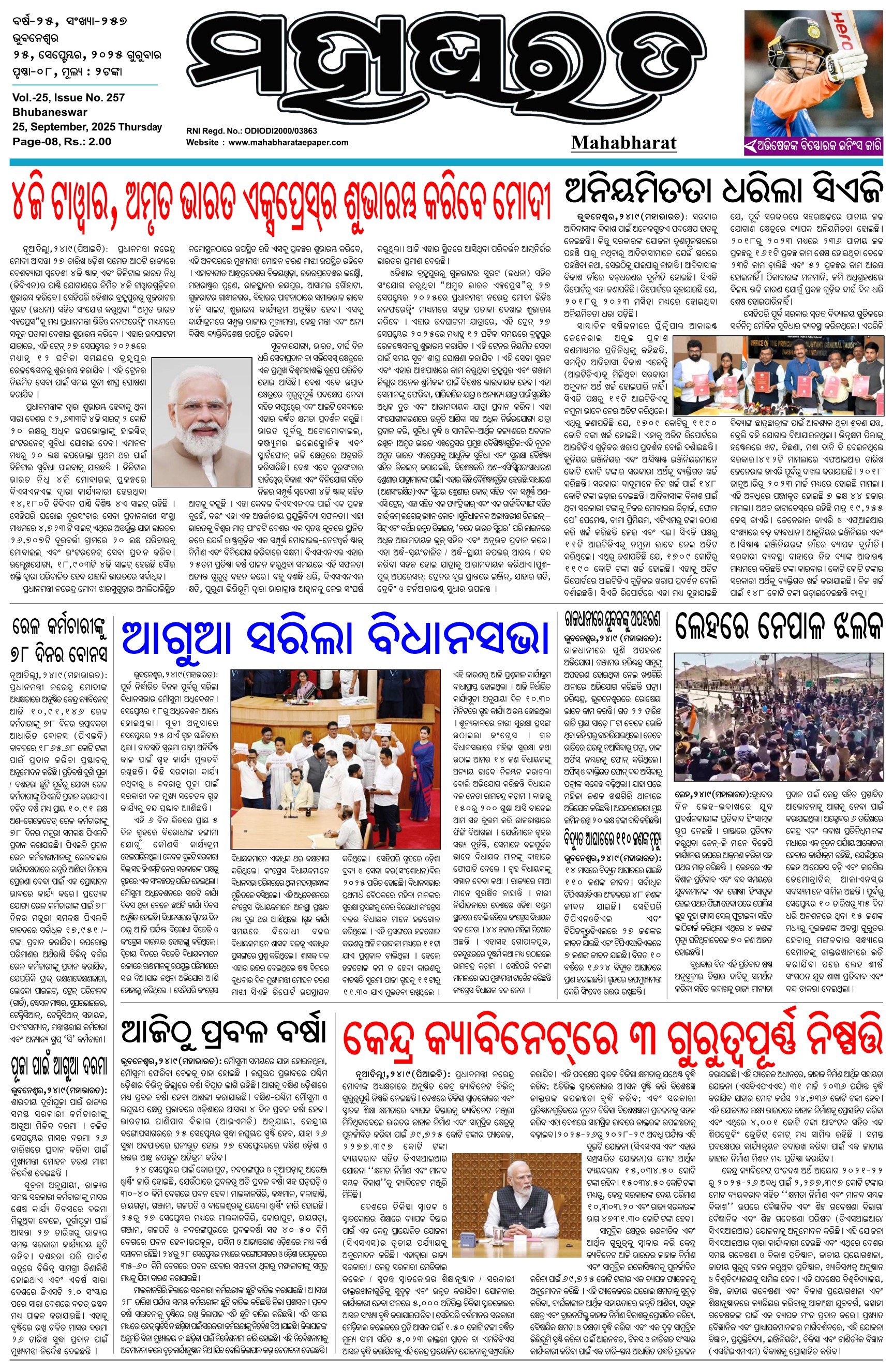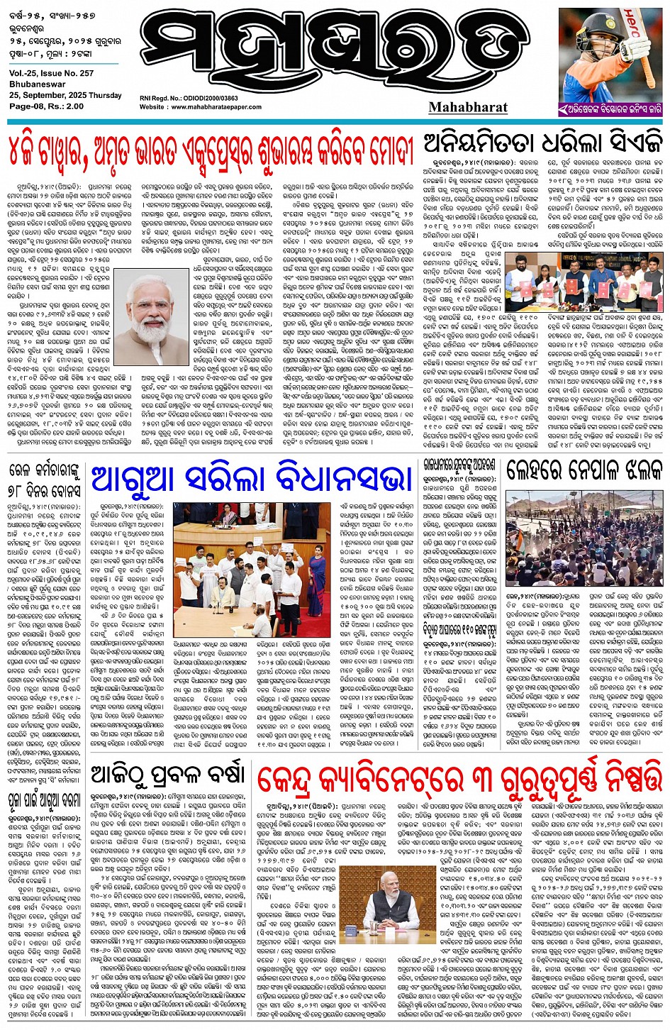 The Mahabharat Odia Daily Newspaper September 25, 2025 The Mahabharat Odia Daily Newspaper << First << 1 2 3 4 >> Last >> Page 1Page 2Page 3Page 4Page 5Page 6Page 7Page 8 × The Mahabharat Odia Daily Newspaper Page-1Page-2Page-3Page-4Page-5Page-6Page-7Page-8 Full PDF << First << 1 2 3 4 >> Last >> Page-1Page-2Page-3Page-4Page-5Page-6Page-7Page-8 Page-1