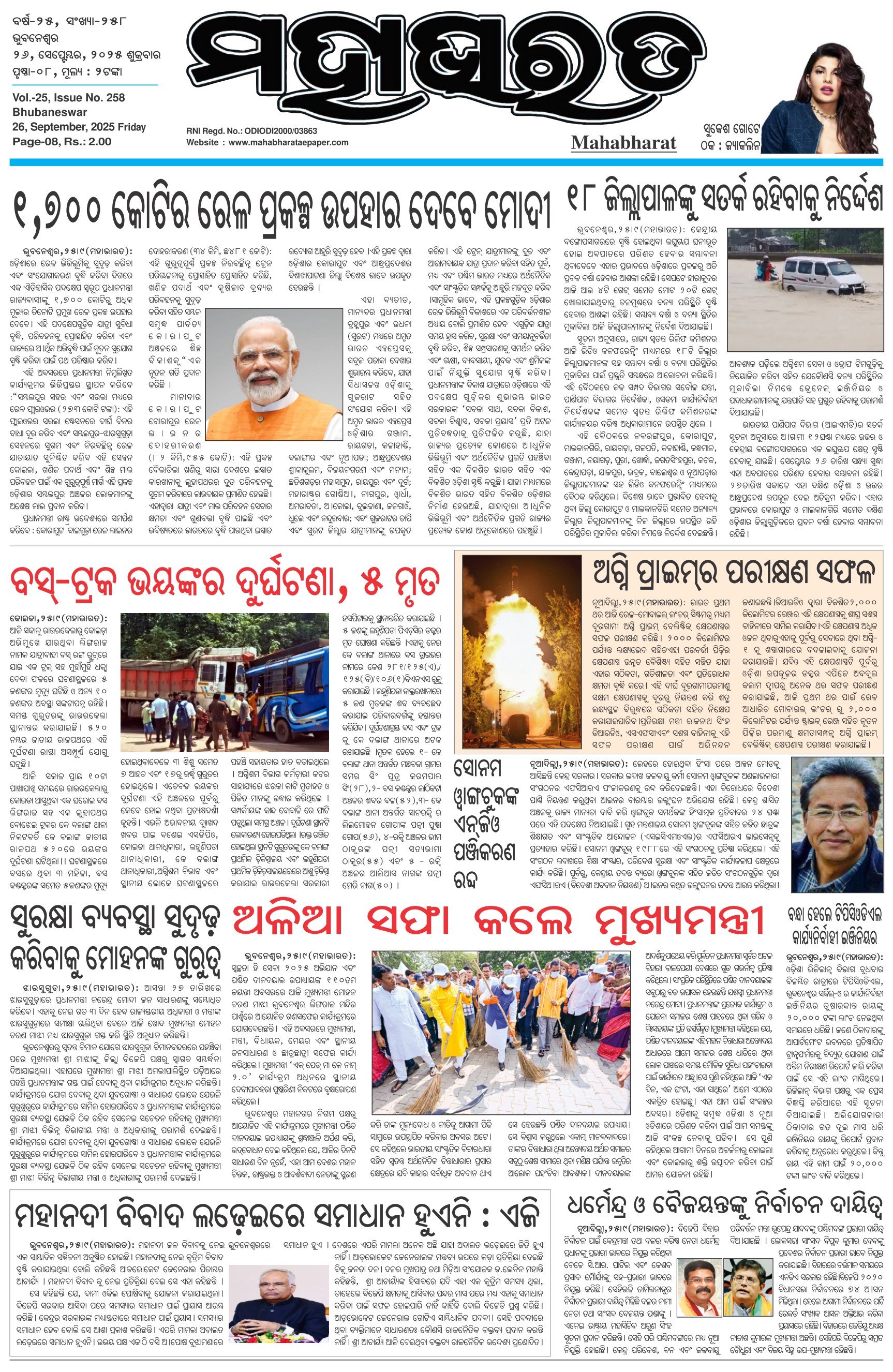 The Mahabharat Odia Daily Newspaper September 26, 2025 The Mahabharat Odia Daily Newspaper << First << 1 2 3 4 >> Last >> Page 1Page 2Page 3Page 4Page 5Page 6Page 7Page 8 × The Mahabharat Odia Daily Newspaper Page-1Page-2Page-3Page-4Page-5Page-6Page-7Page-8 Full PDF << First << 1 2 3 4 >> Last >> Page-1Page-2Page-3Page-4Page-5Page-6Page-7Page-8 Page-1