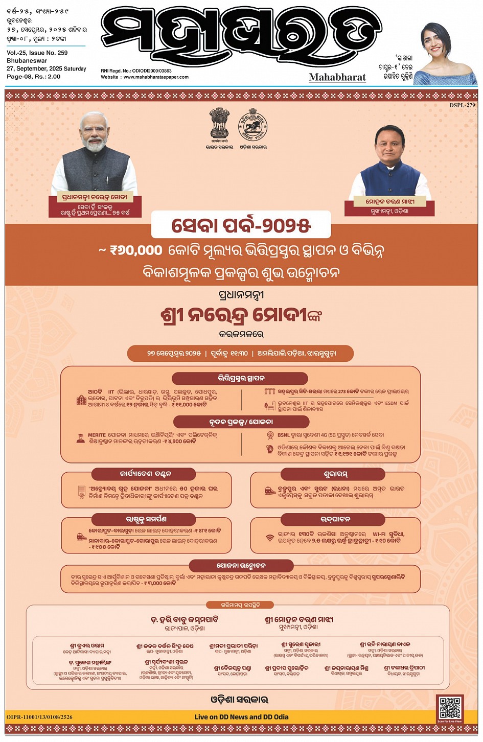 The Mahabharat Odia Daily Newspaper September 27, 2025 The Mahabharat Odia Daily Newspaper << First << 1 2 3 4 >> Last >> Page 1Page 2Page 3Page 4Page 5Page 6Page 7Page 8 × The Mahabharat Odia Daily Newspaper Page-1Page-2Page-3Page-4Page-5Page-6Page-7Page-8 Full PDF << First << 1 2 3 4 >> Last >> Page-1Page-2Page-3Page-4Page-5Page-6Page-7Page-8 Page-1