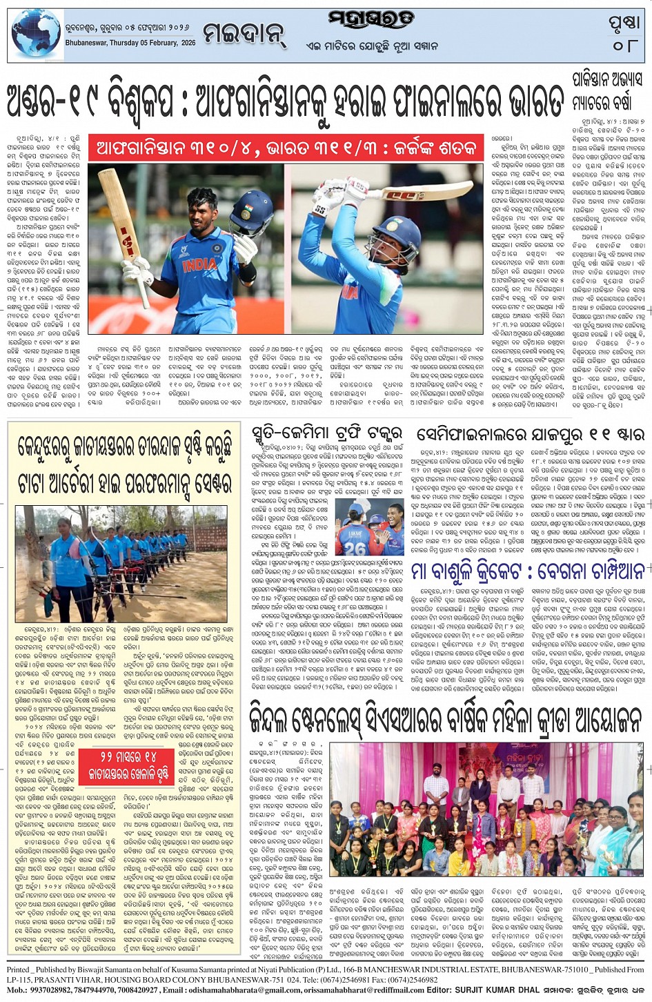 The Mahabharat Odia Daily Newspaper Page: 8 February 05, 2026 The Mahabharat Odia Daily Newspaper << First << 5 6 7 8 >> Last >> Page 1Page 2Page 3Page 4Page 5Page 6Page 7Page 8 × The Mahabharat Odia Daily Newspaper Page-1Page-2Page-3Page-4Page-5Page-6Page-7Page-8 Full PDF << First << 5 6 7 8 >> Last >> Page-1Page-2Page-3Page-4Page-5Page-6Page-7Page-8 Page-8