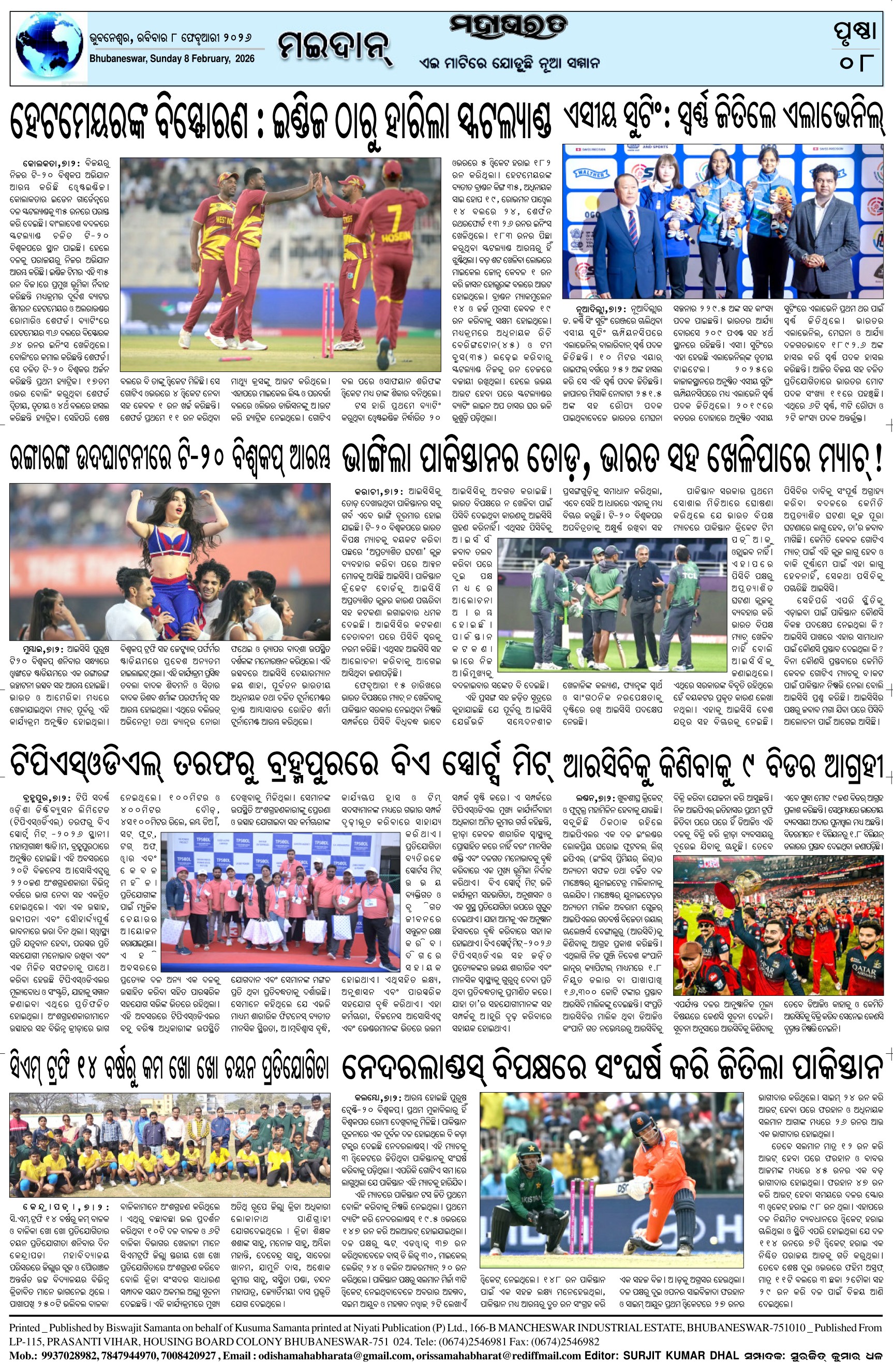 The Mahabharat Odia Daily Newspaper Page: 8 February 08, 2026 The Mahabharat Odia Daily Newspaper << First << 5 6 7 8 >> Last >> Page 1Page 2Page 3Page 4Page 5Page 6Page 7Page 8 × The Mahabharat Odia Daily Newspaper Page-1Page-2Page-3Page-4Page-5Page-6Page-7Page-8 Full PDF << First << 5 6 7 8 >> Last >> Page-1Page-2Page-3Page-4Page-5Page-6Page-7Page-8 Page-8