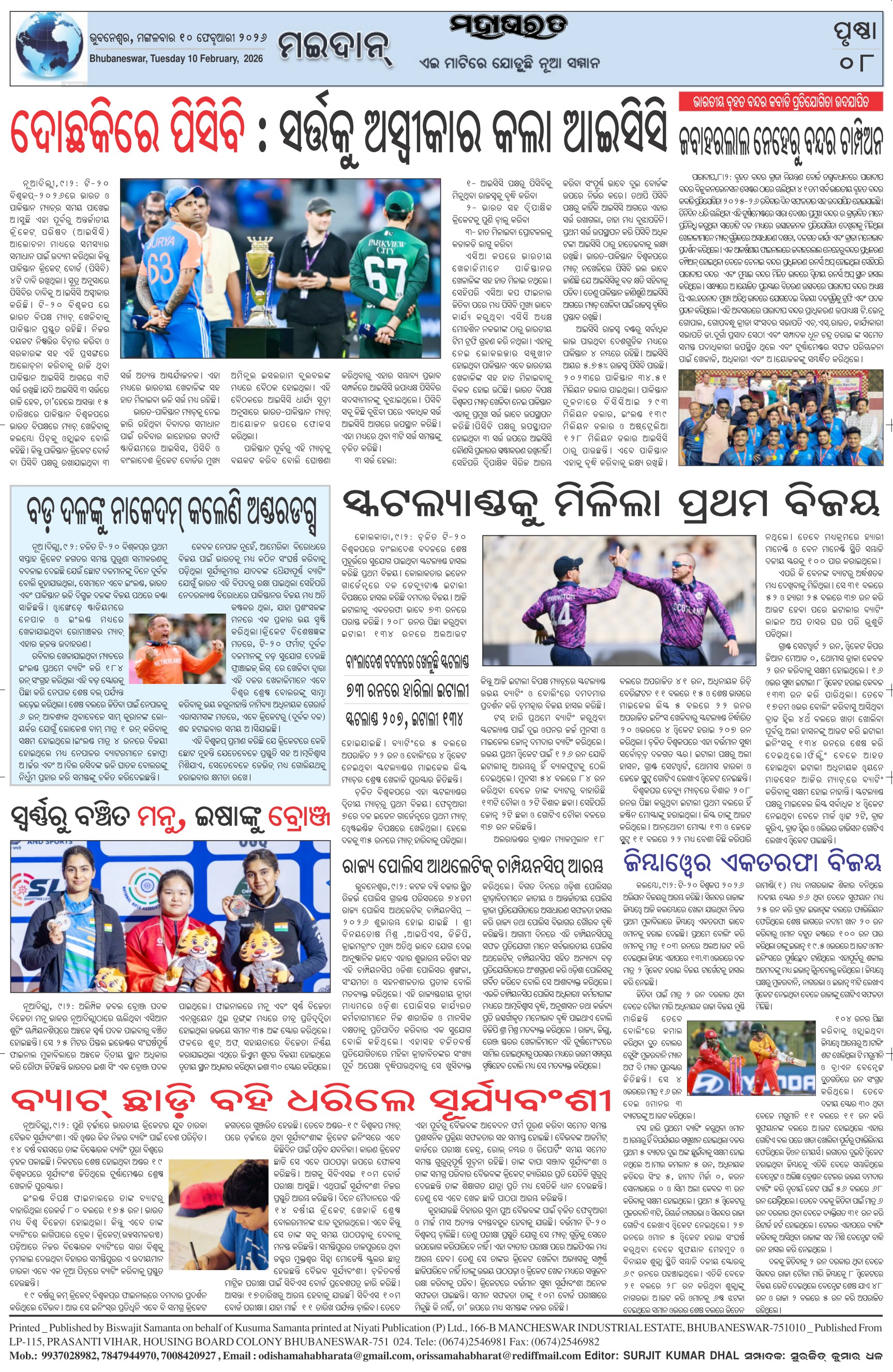 The Mahabharat Odia Daily Newspaper Page: 8 February 10, 2026 The Mahabharat Odia Daily Newspaper << First << 5 6 7 8 >> Last >> Page 1Page 2Page 3Page 4Page 5Page 6Page 7Page 8 × The Mahabharat Odia Daily Newspaper Page-1Page-2Page-3Page-4Page-5Page-6Page-7Page-8 Full PDF << First << 5 6 7 8 >> Last >> Page-1Page-2Page-3Page-4Page-5Page-6Page-7Page-8 Page-8