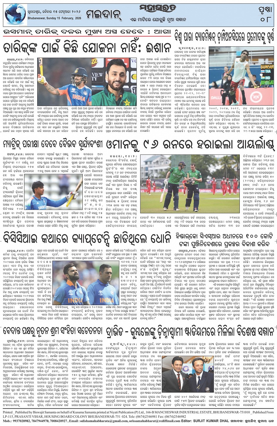 The Mahabharat Odia Daily Newspaper Page: 8 February 15, 2026 The Mahabharat Odia Daily Newspaper << First << 5 6 7 8 >> Last >> Page 1Page 2Page 3Page 4Page 5Page 6Page 7Page 8 × The Mahabharat Odia Daily Newspaper Page-1Page-2Page-3Page-4Page-5Page-6Page-7Page-8 Full PDF << First << 5 6 7 8 >> Last >> Page-1Page-2Page-3Page-4Page-5Page-6Page-7Page-8 Page-8