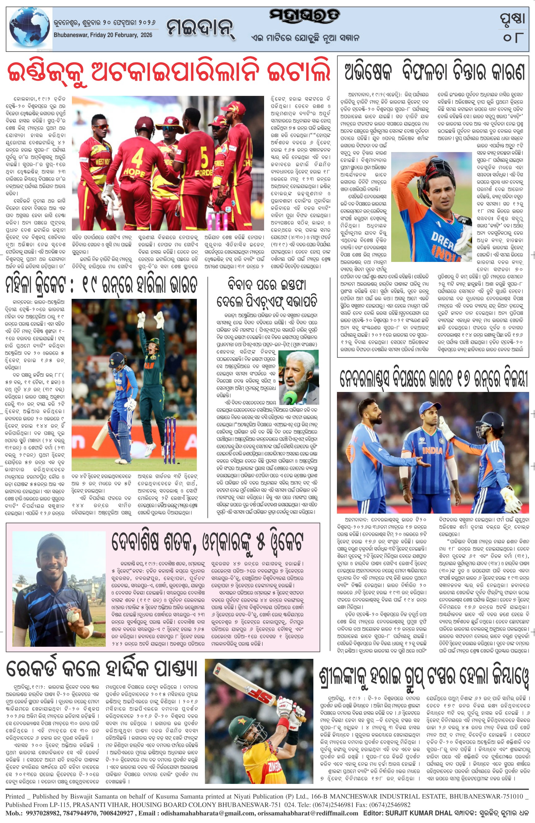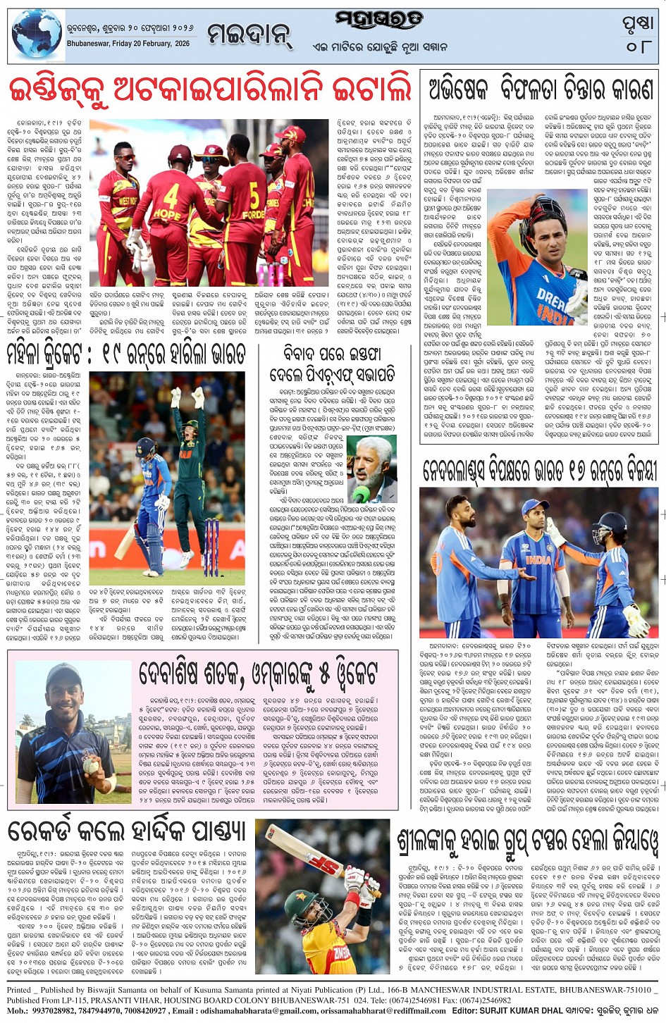 The Mahabharat Odia Daily Newspaper Page: 8 February 20, 2026 The Mahabharat Odia Daily Newspaper << First << 5 6 7 8 >> Last >> Page 1Page 2Page 3Page 4Page 5Page 6Page 7Page 8 × The Mahabharat Odia Daily Newspaper Page-1Page-2Page-3Page-4Page-5Page-6Page-7Page-8 Full PDF << First << 5 6 7 8 >> Last >> Page-1Page-2Page-3Page-4Page-5Page-6Page-7Page-8 Page-8