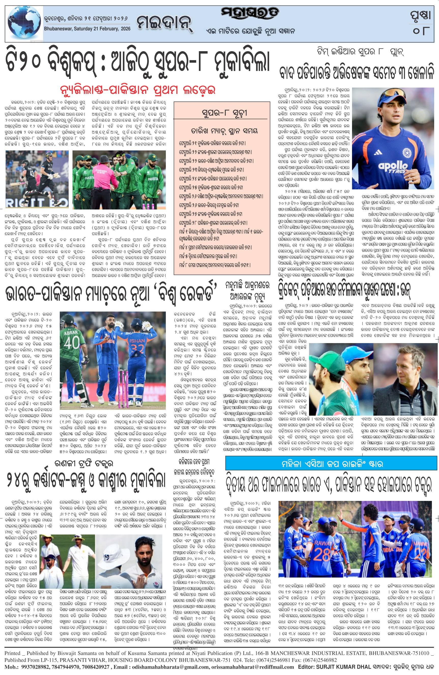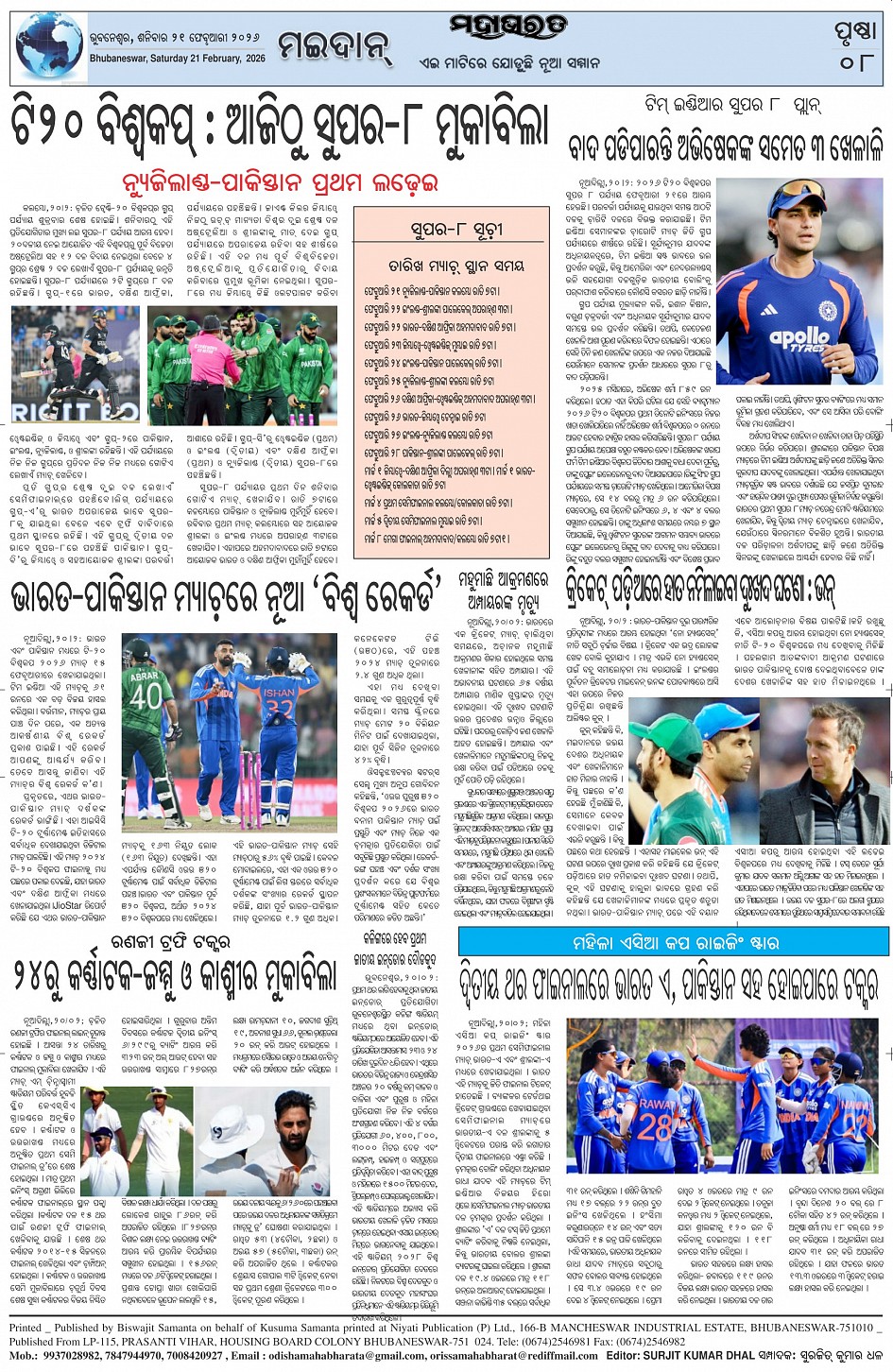 The Mahabharat Odia Daily Newspaper Page: 8 February 21, 2026 The Mahabharat Odia Daily Newspaper << First << 5 6 7 8 >> Last >> Page 1Page 2Page 3Page 4Page 5Page 6Page 7Page 8 × The Mahabharat Odia Daily Newspaper Page-1Page-2Page-3Page-4Page-5Page-6Page-7Page-8 Full PDF << First << 5 6 7 8 >> Last >> Page-1Page-2Page-3Page-4Page-5Page-6Page-7Page-8 Page-8
