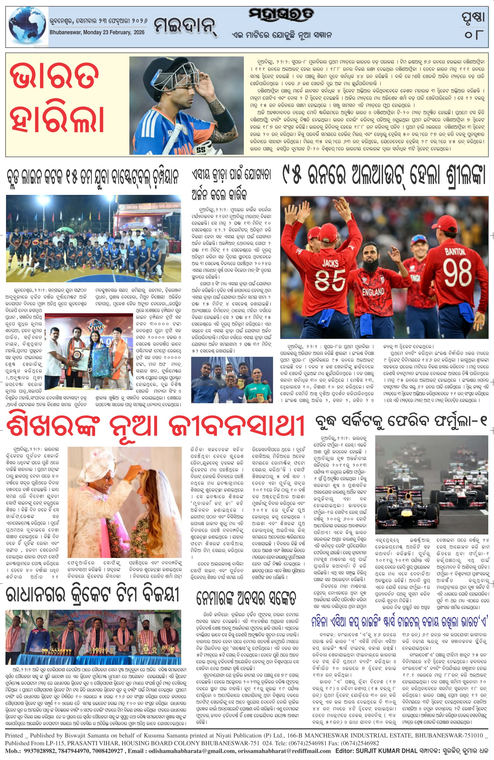 The Mahabharat Odia Daily Newspaper Page: 8 February 23, 2026 The Mahabharat Odia Daily Newspaper << First << 5 6 7 8 >> Last >> Page 1Page 2Page 3Page 4Page 5Page 6Page 7Page 8 × The Mahabharat Odia Daily Newspaper Page-1Page-2Page-3Page-4Page-5Page-6Page-7Page-8 Full PDF << First << 5 6 7 8 >> Last >> Page-1Page-2Page-3Page-4Page-5Page-6Page-7Page-8 Page-8