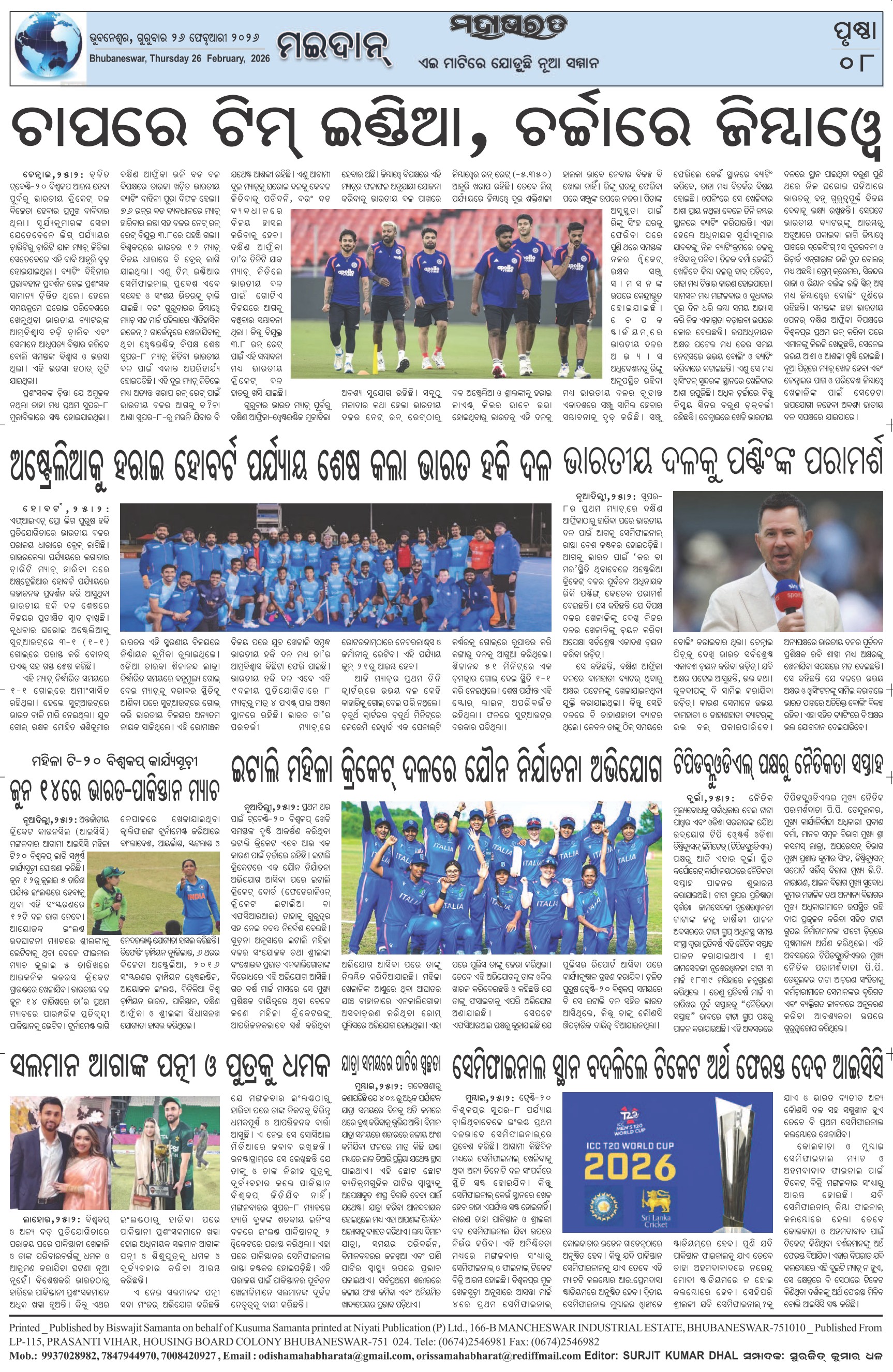 The Mahabharat Odia Daily Newspaper Page: 8 February 26, 2026 The Mahabharat Odia Daily Newspaper << First << 5 6 7 8 >> Last >> Page 1Page 2Page 3Page 4Page 5Page 6Page 7Page 8 × The Mahabharat Odia Daily Newspaper Page-1Page-2Page-3Page-4Page-5Page-6Page-7Page-8 Full PDF << First << 5 6 7 8 >> Last >> Page-1Page-2Page-3Page-4Page-5Page-6Page-7Page-8 Page-8