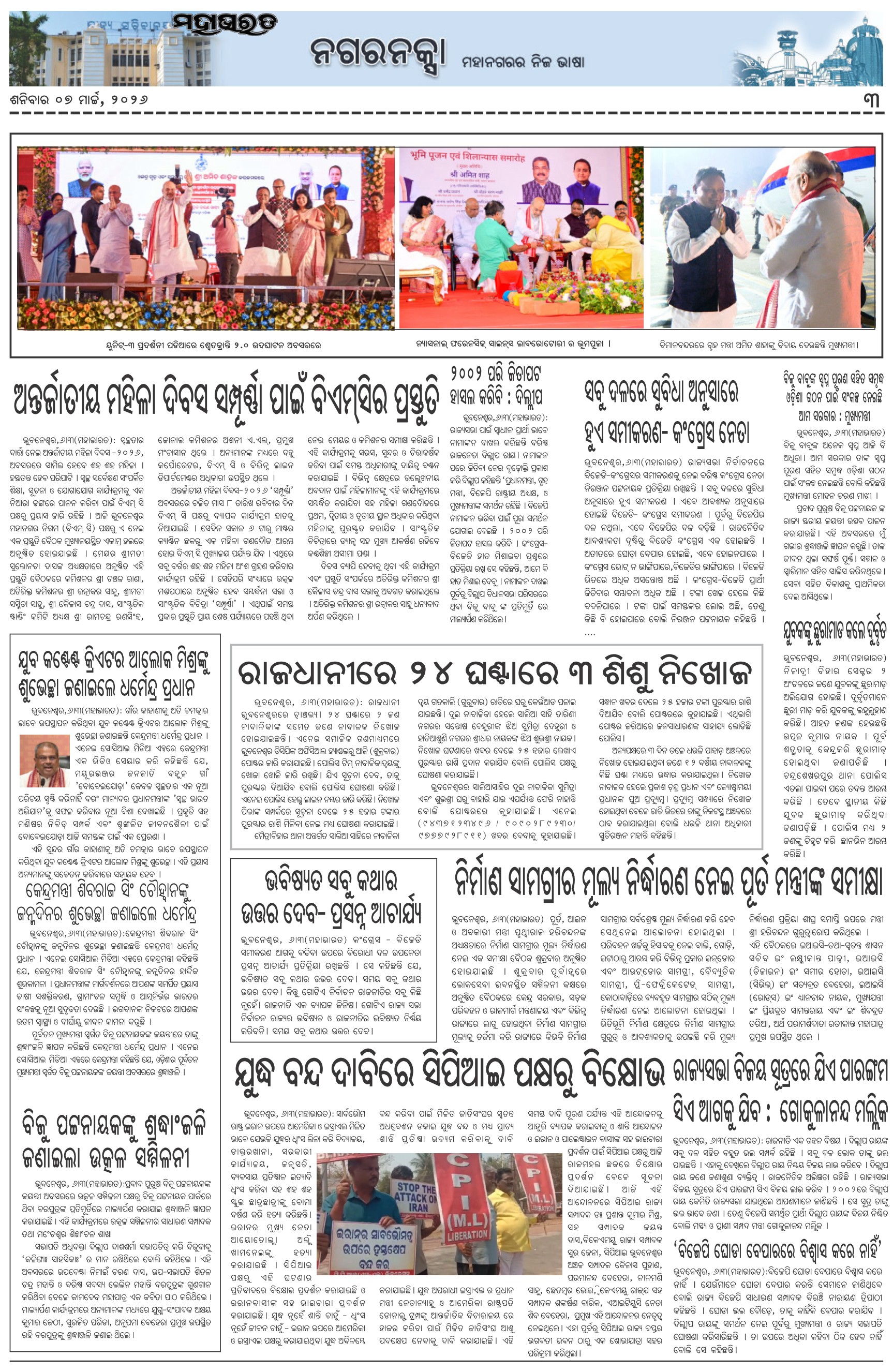 The Mahabharat Odia Daily Newspaper Page: 3 March 07, 2026 The Mahabharat Odia Daily Newspaper << First << 1 2 3 4 >> Last >> Page 1Page 2Page 3Page 4Page 5Page 6Page 7Page 8 × The Mahabharat Odia Daily Newspaper Page-1Page-2Page-3Page-4Page-5Page-6Page-7Page-8 Full PDF << First << 1 2 3 4 >> Last >> Page-1Page-2Page-3Page-4Page-5Page-6Page-7Page-8 Page-3