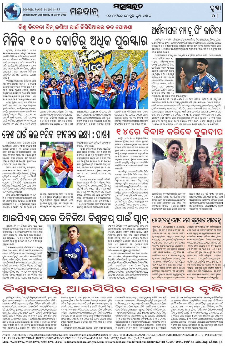 The Mahabharat Odia Daily Newspaper Page: 8 March 11, 2026 The Mahabharat Odia Daily Newspaper << First << 5 6 7 8 >> Last >> Page 1Page 2Page 3Page 4Page 5Page 6Page 7Page 8 × The Mahabharat Odia Daily Newspaper Page-1Page-2Page-3Page-4Page-5Page-6Page-7Page-8 Full PDF << First << 5 6 7 8 >> Last >> Page-1Page-2Page-3Page-4Page-5Page-6Page-7Page-8 Page-8