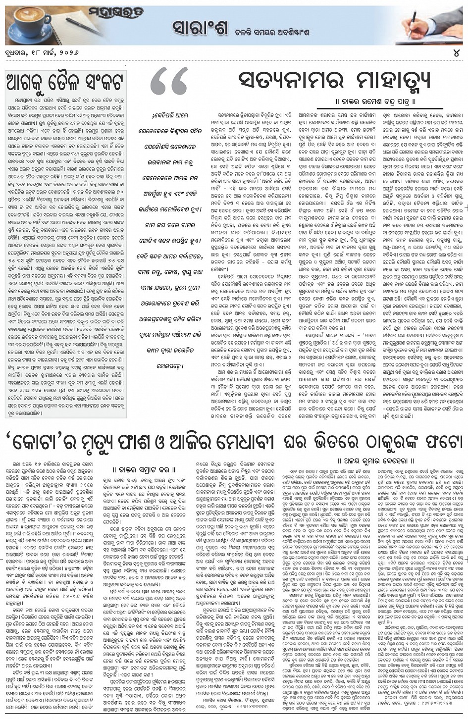 The Mahabharat Odia Daily Newspaper Page: 4 March 18, 2026 The Mahabharat Odia Daily Newspaper << First << 2 3 4 5 >> Last >> Page 1Page 2Page 3Page 4Page 5Page 6Page 7Page 8 × The Mahabharat Odia Daily Newspaper Page-1Page-2Page-3Page-4Page-5Page-6Page-7Page-8 Full PDF << First << 2 3 4 5 >> Last >> Page-1Page-2Page-3Page-4Page-5Page-6Page-7Page-8 Page-4