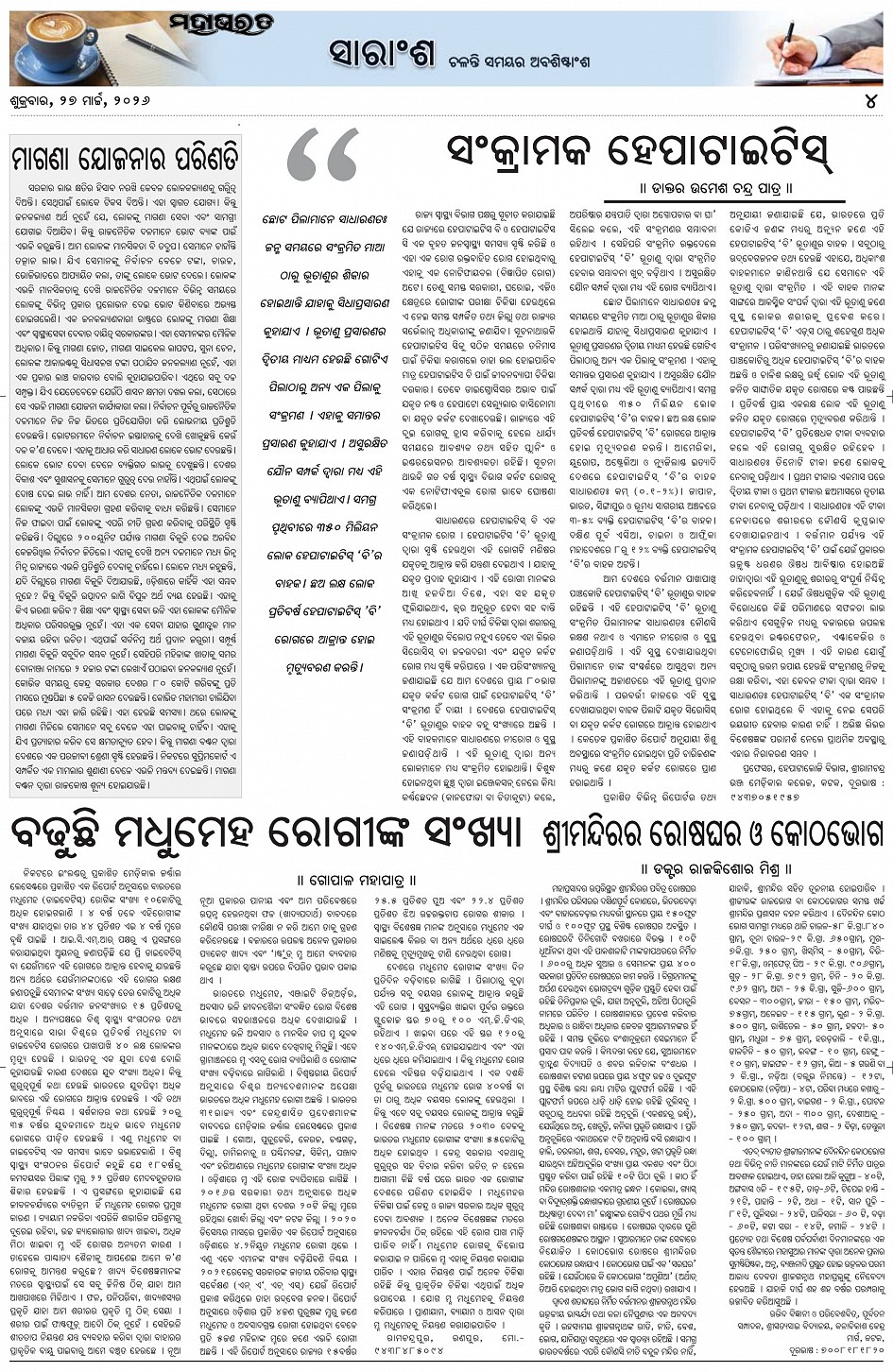The Mahabharat Odia Daily Newspaper Page: 4 March 27, 2026 The Mahabharat Odia Daily Newspaper << First << 2 3 4 5 >> Last >> Page 1Page 2Page 3Page 4Page 5Page 6Page 7Page 8 × The Mahabharat Odia Daily Newspaper Page-1Page-2Page-3Page-4Page-5Page-6Page-7Page-8 Full PDF << First << 2 3 4 5 >> Last >> Page-1Page-2Page-3Page-4Page-5Page-6Page-7Page-8 Page-4