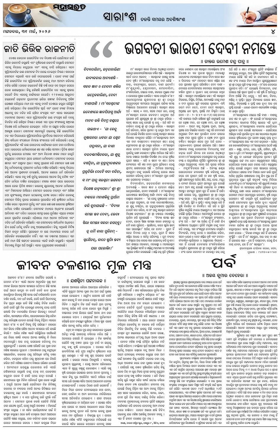 The Mahabharat Odia Daily Newspaper Page: 4 March 31, 2026 The Mahabharat Odia Daily Newspaper << First << 2 3 4 5 >> Last >> Page 1Page 2Page 3Page 4Page 5Page 6Page 7Page 8 × The Mahabharat Odia Daily Newspaper Page-1Page-2Page-3Page-4Page-5Page-6Page-7Page-8 Full PDF << First << 2 3 4 5 >> Last >> Page-1Page-2Page-3Page-4Page-5Page-6Page-7Page-8 Page-4