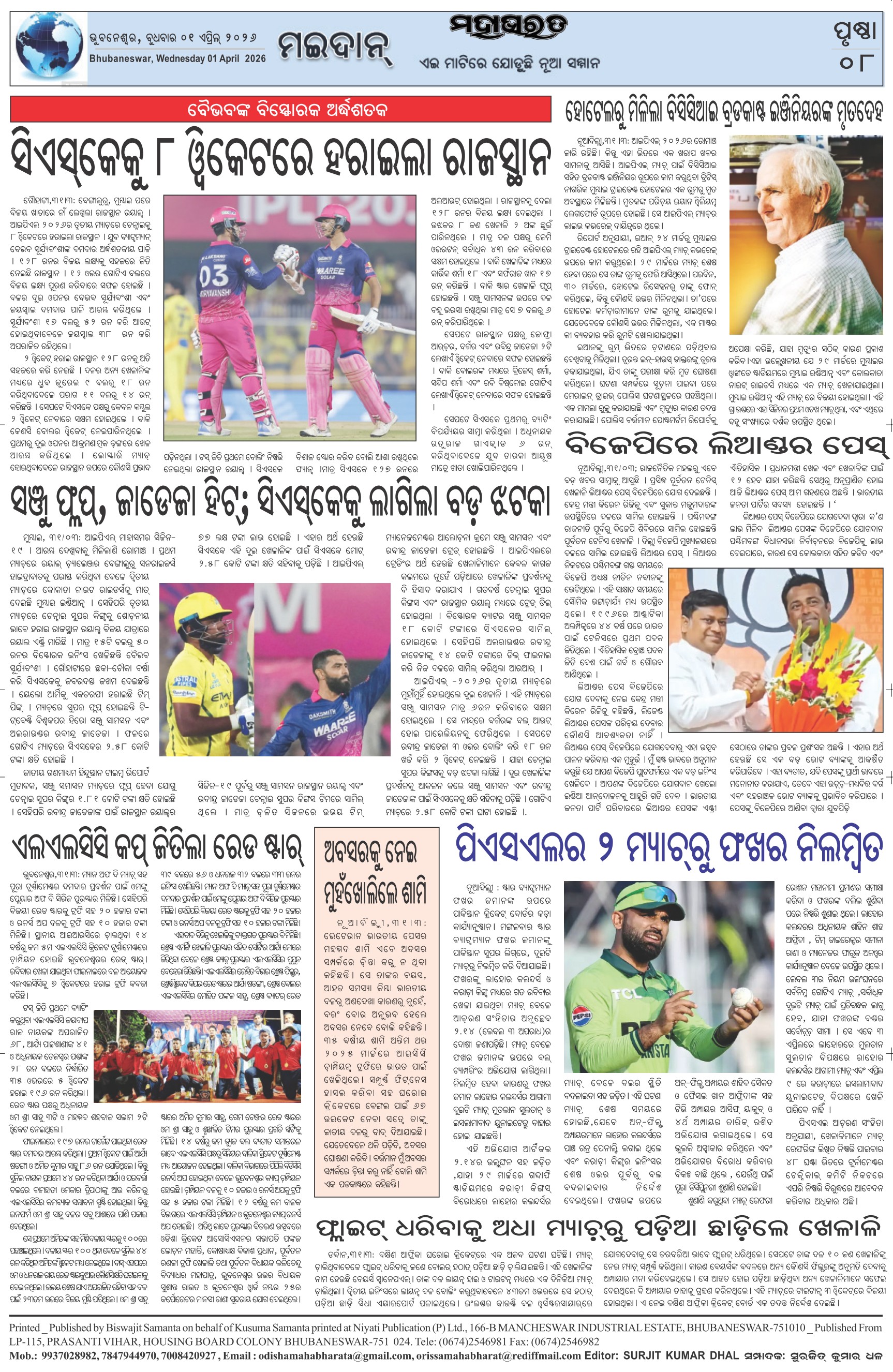 The Mahabharat Odia Daily Newspaper Page: 8 April 01, 2026 The Mahabharat Odia Daily Newspaper << First << 5 6 7 8 >> Last >> Page 1Page 2Page 3Page 4Page 5Page 6Page 7Page 8 × The Mahabharat Odia Daily Newspaper Page-1Page-2Page-3Page-4Page-5Page-6Page-7Page-8 Full PDF << First << 5 6 7 8 >> Last >> Page-1Page-2Page-3Page-4Page-5Page-6Page-7Page-8 Page-8