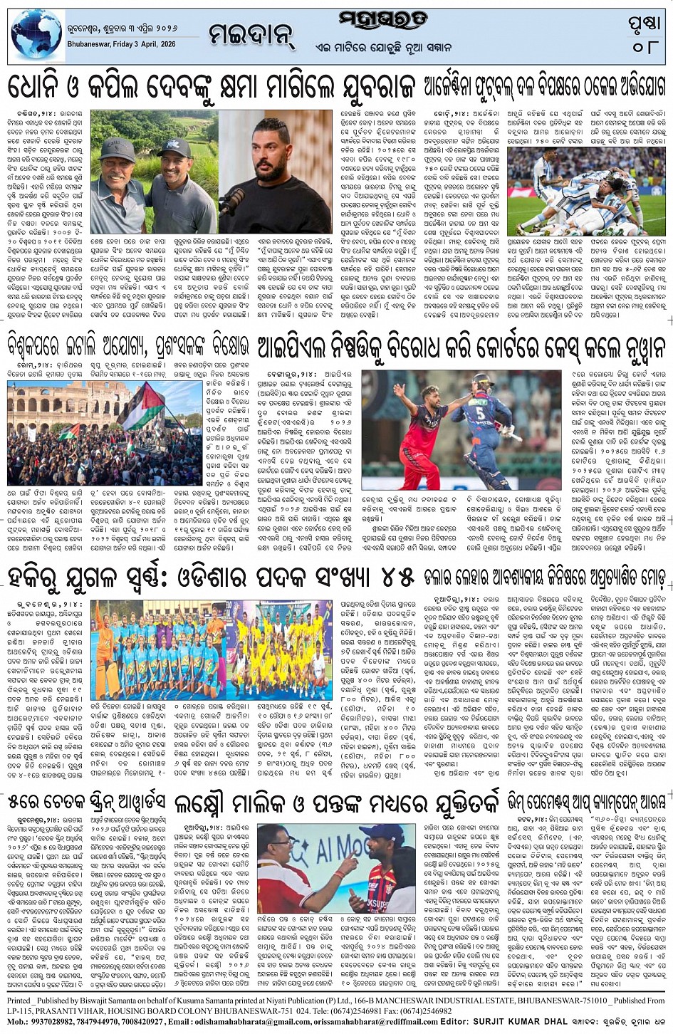 The Mahabharat Odia Daily Newspaper Page: 8 April 03, 2026 The Mahabharat Odia Daily Newspaper << First << 5 6 7 8 >> Last >> Page 1Page 2Page 3Page 4Page 5Page 6Page 7Page 8 × The Mahabharat Odia Daily Newspaper Page-1Page-2Page-3Page-4Page-5Page-6Page-7Page-8 Full PDF << First << 5 6 7 8 >> Last >> Page-1Page-2Page-3Page-4Page-5Page-6Page-7Page-8 Page-8