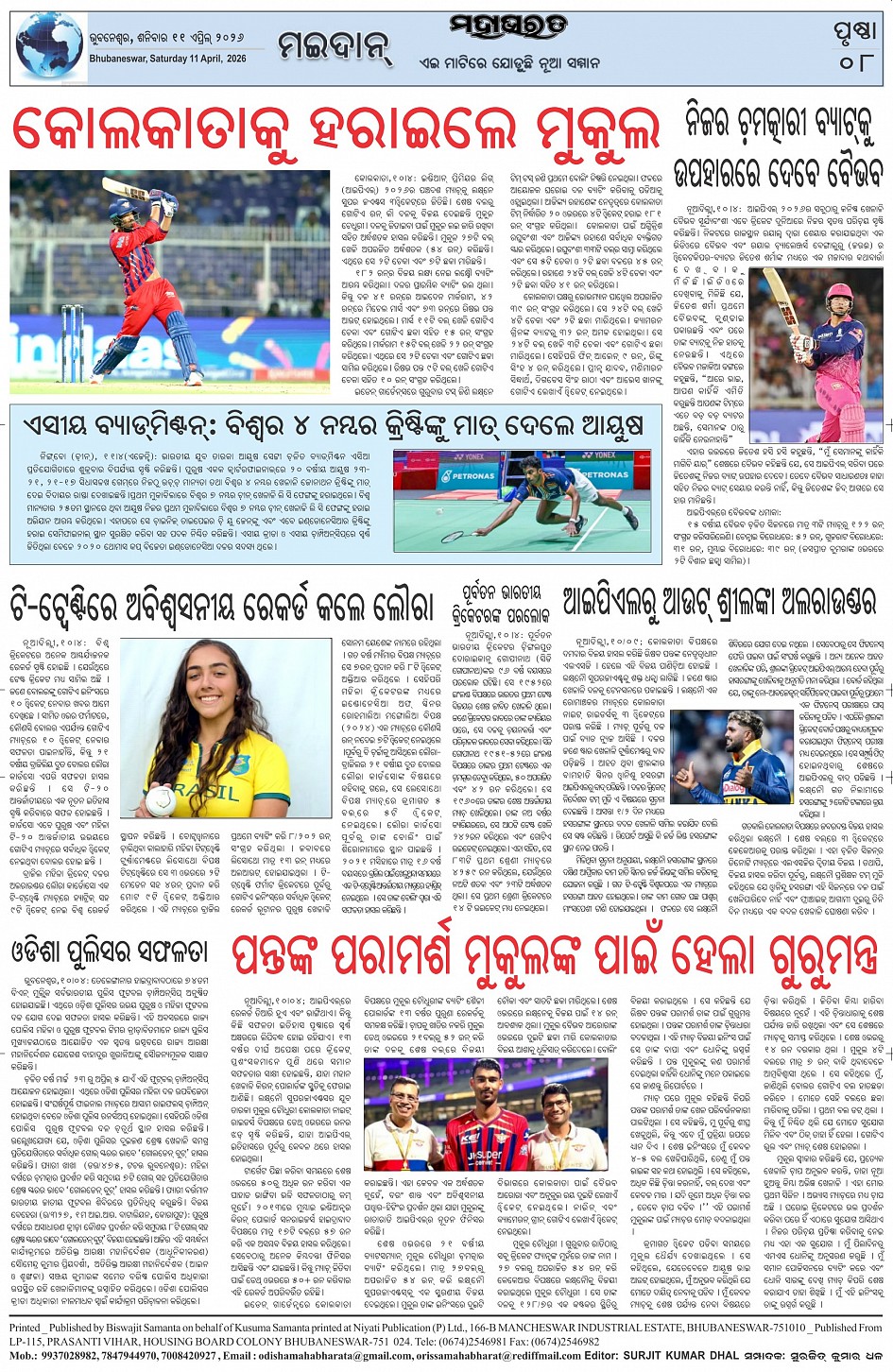The Mahabharat Odia Daily Newspaper Page: 8 April 11, 2026 The Mahabharat Odia Daily Newspaper << First << 5 6 7 8 >> Last >> Page 1Page 2Page 3Page 4Page 5Page 6Page 7Page 8 × The Mahabharat Odia Daily Newspaper Page-1Page-2Page-3Page-4Page-5Page-6Page-7Page-8 Full PDF << First << 5 6 7 8 >> Last >> Page-1Page-2Page-3Page-4Page-5Page-6Page-7Page-8 Page-8