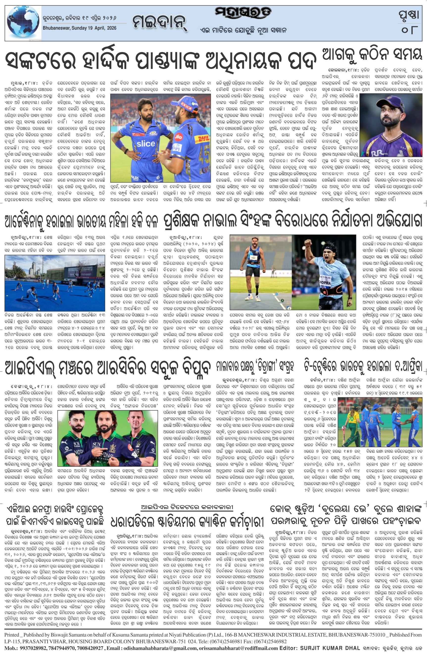 The Mahabharat Odia Daily Newspaper Page: 8 April 19, 2026 The Mahabharat Odia Daily Newspaper << First << 5 6 7 8 >> Last >> Page 1Page 2Page 3Page 4Page 5Page 6Page 7Page 8 × The Mahabharat Odia Daily Newspaper Page-1Page-2Page-3Page-4Page-5Page-6Page-7Page-8 Full PDF << First << 5 6 7 8 >> Last >> Page-1Page-2Page-3Page-4Page-5Page-6Page-7Page-8 Page-8