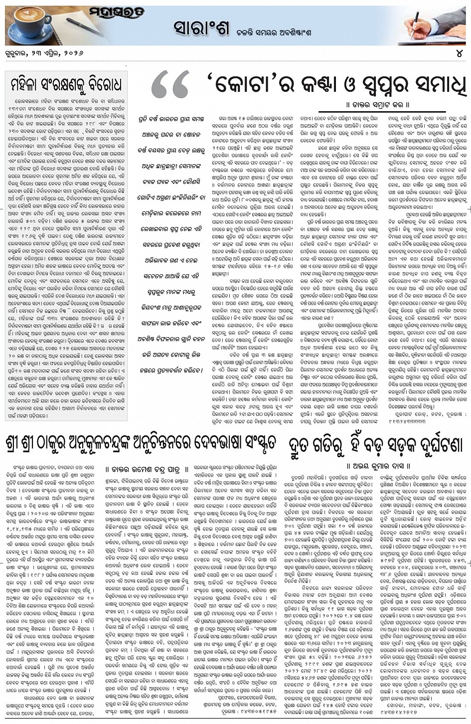 The Mahabharat Odia Daily Newspaper Page: 4 April 23, 2026 The Mahabharat Odia Daily Newspaper << First << 2 3 4 5 >> Last >> Page 1Page 2Page 3Page 4Page 5Page 6Page 7Page 8 × The Mahabharat Odia Daily Newspaper Page-1Page-2Page-3Page-4Page-5Page-6Page-7Page-8 Full PDF << First << 2 3 4 5 >> Last >> Page-1Page-2Page-3Page-4Page-5Page-6Page-7Page-8 Page-4